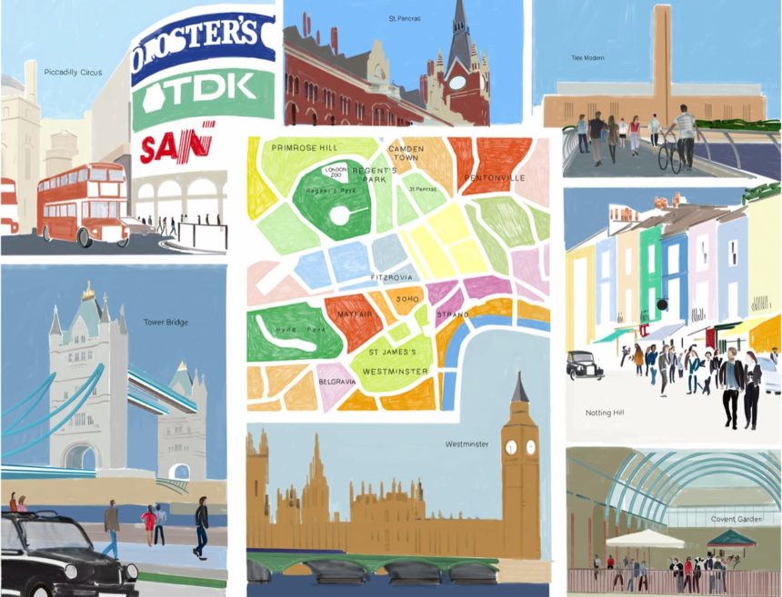 Landscape, illustrated map, mixed media, digital painting, iPad
