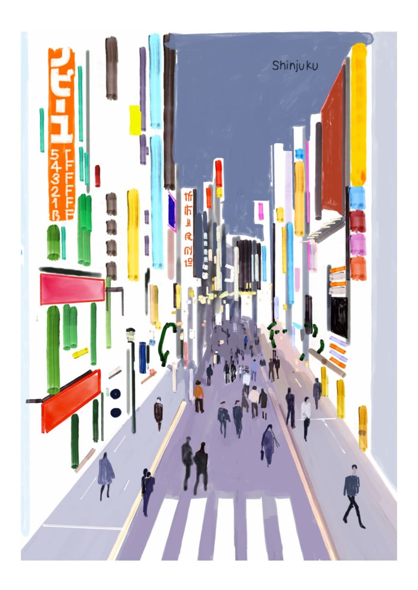 Paysage urbain, technique mixte, peinture digitale, tablette graphique