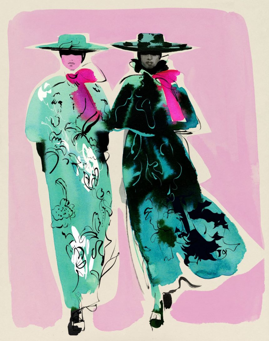 Illustration de mode, illustration à l'encre, défilé, beauté