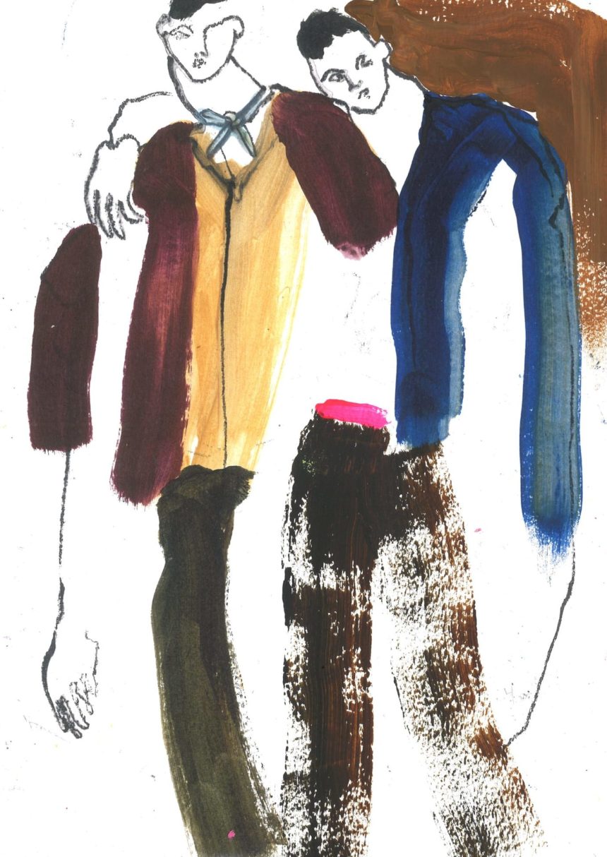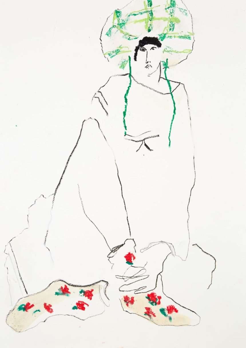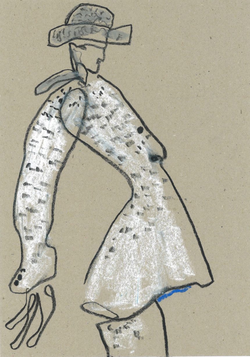 Fashion illustration, pose, drawing, oil pastel