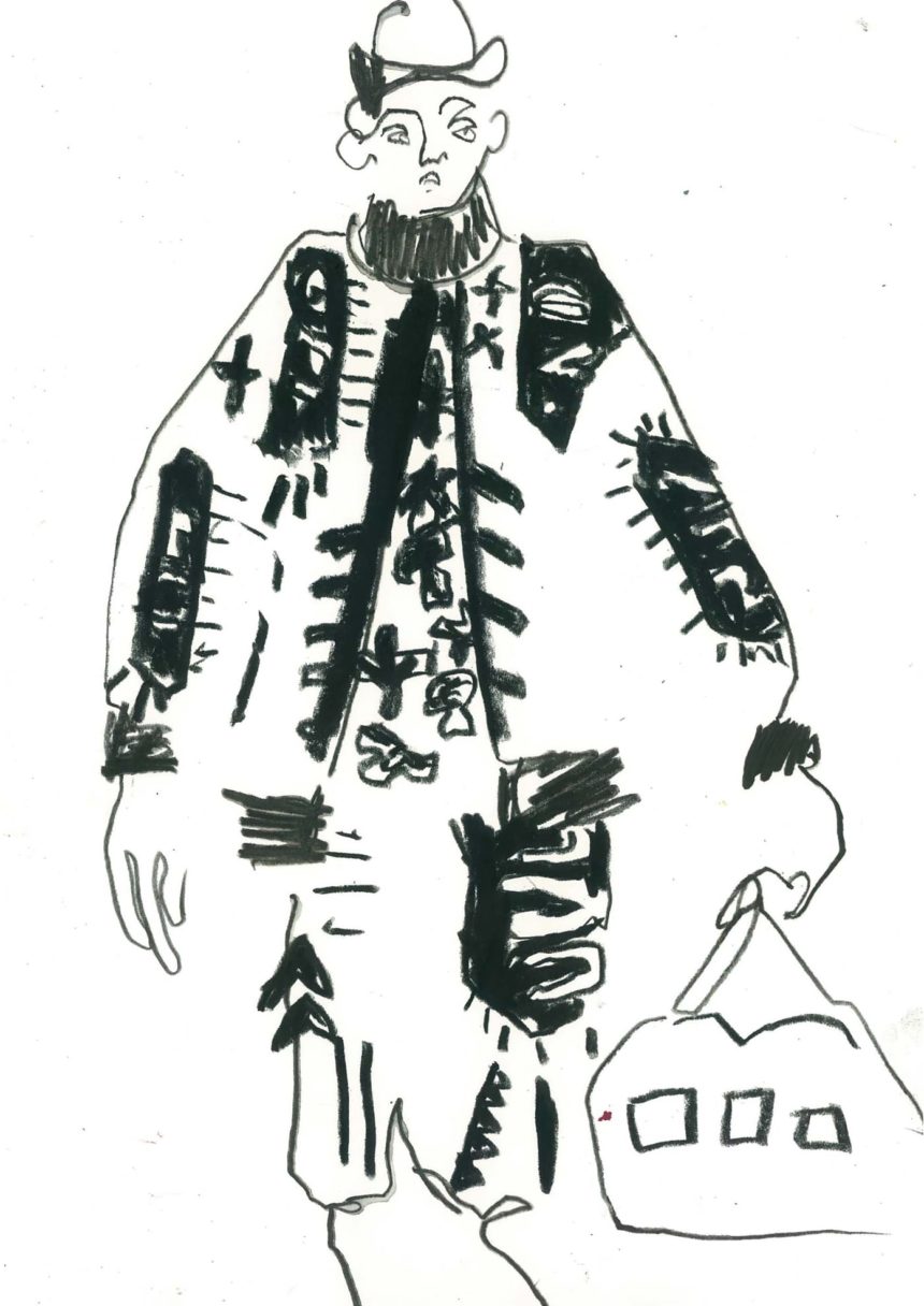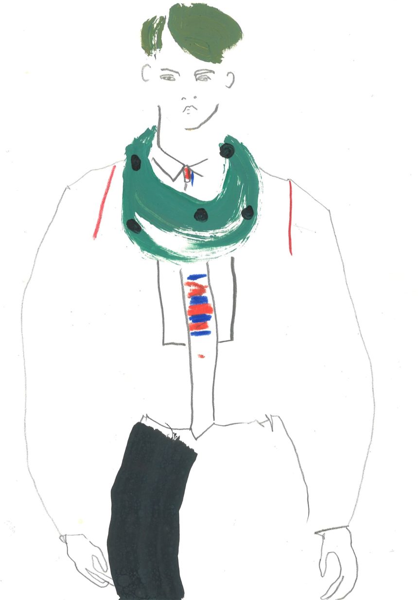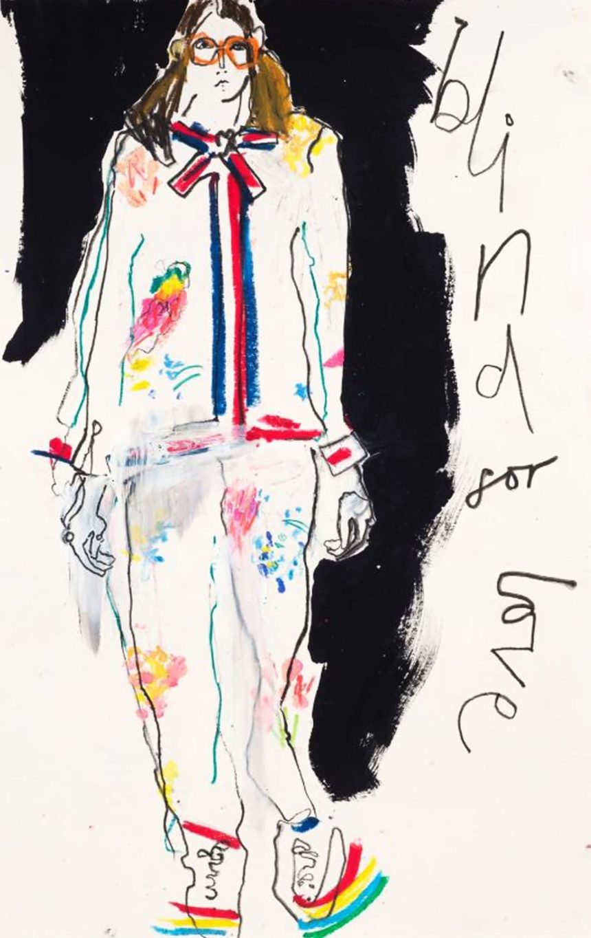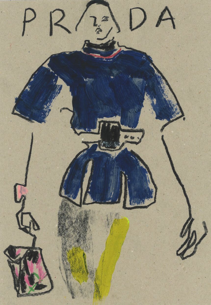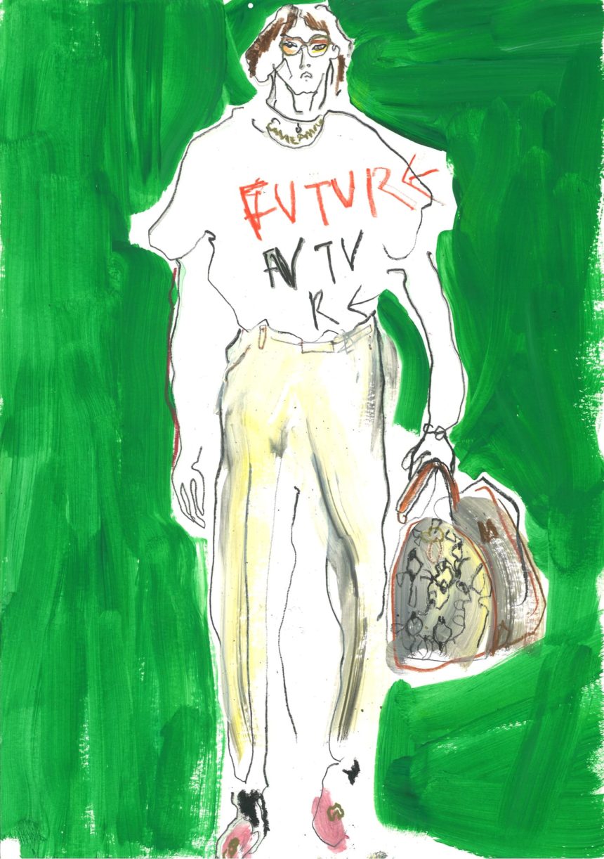 Fashion illustration, catwalk, accessories, oil pastel