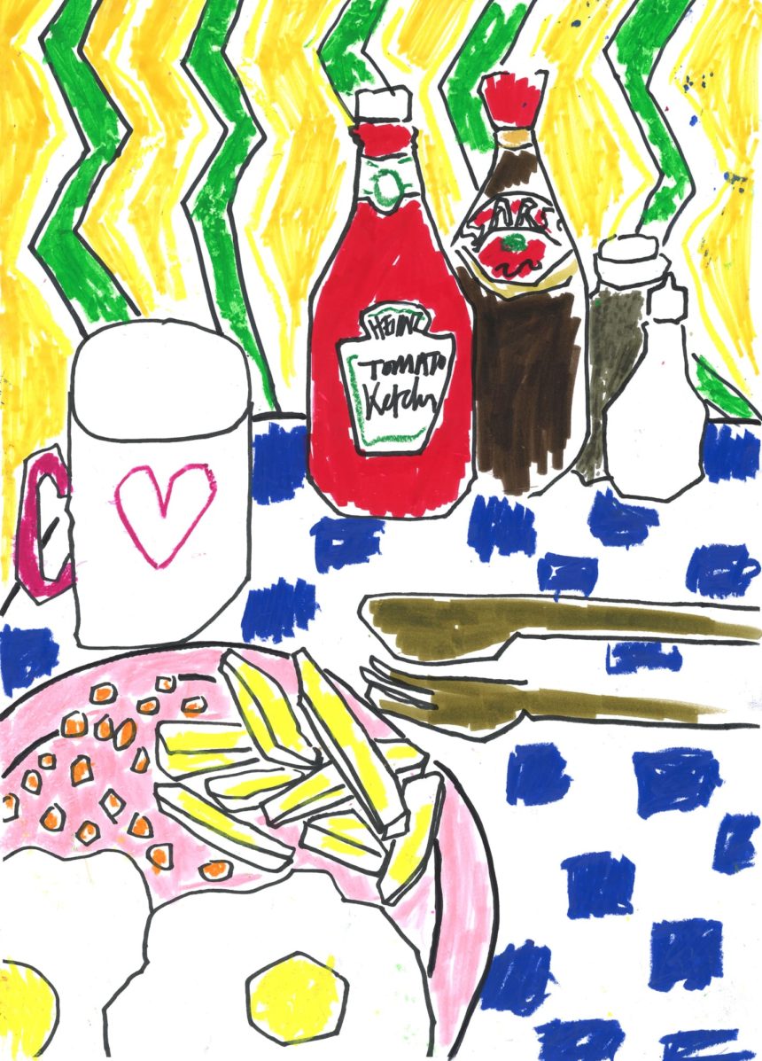 Stillife, illustration, drawing, mixed media, oil pastel, crayon