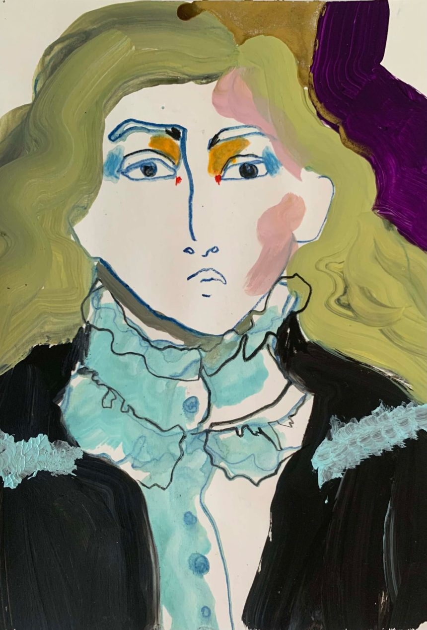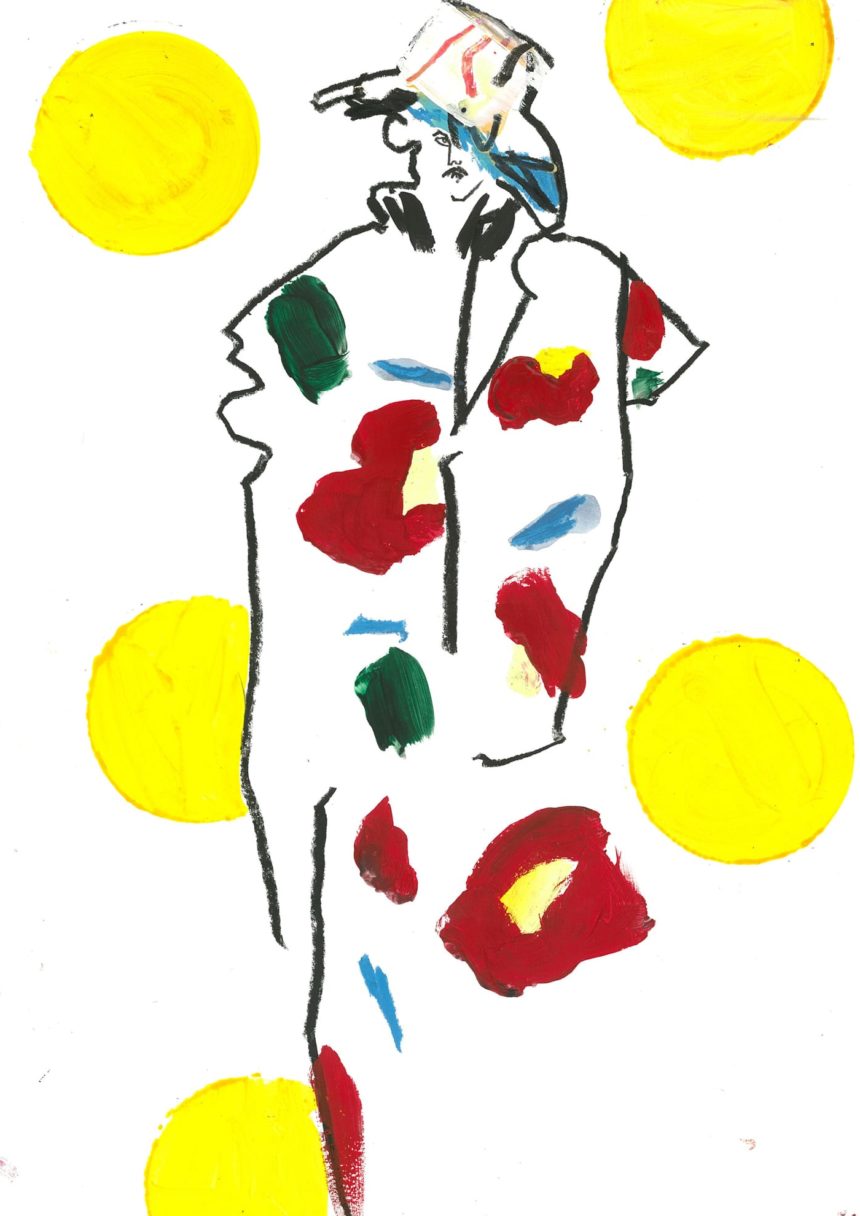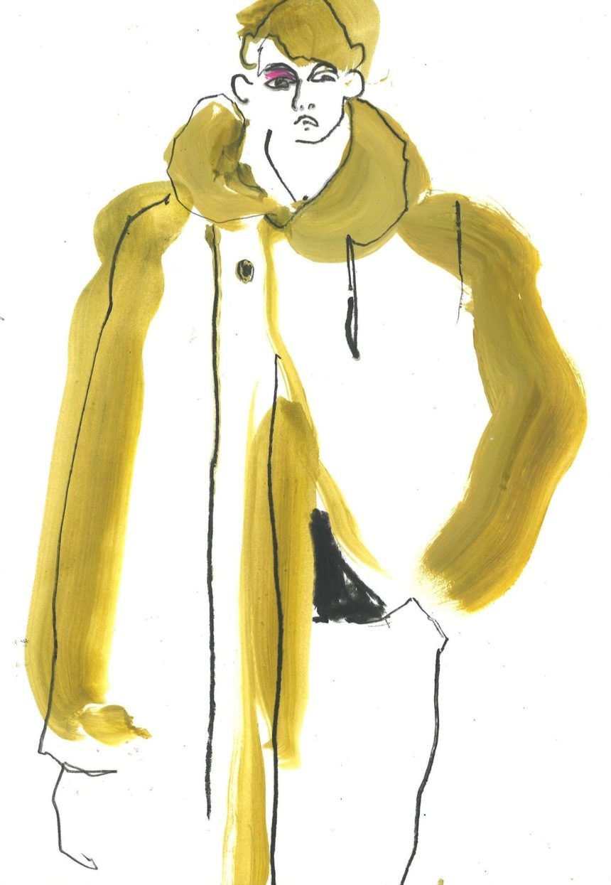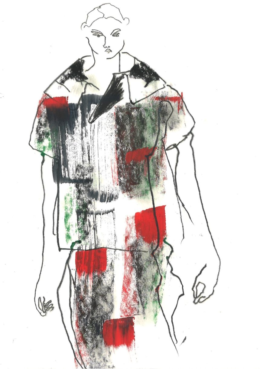 Illustration de mode, technique mixte, peinture acrylique, crayon