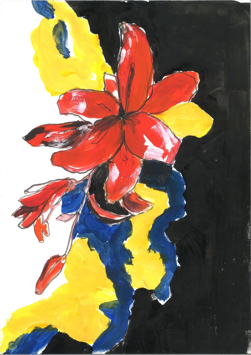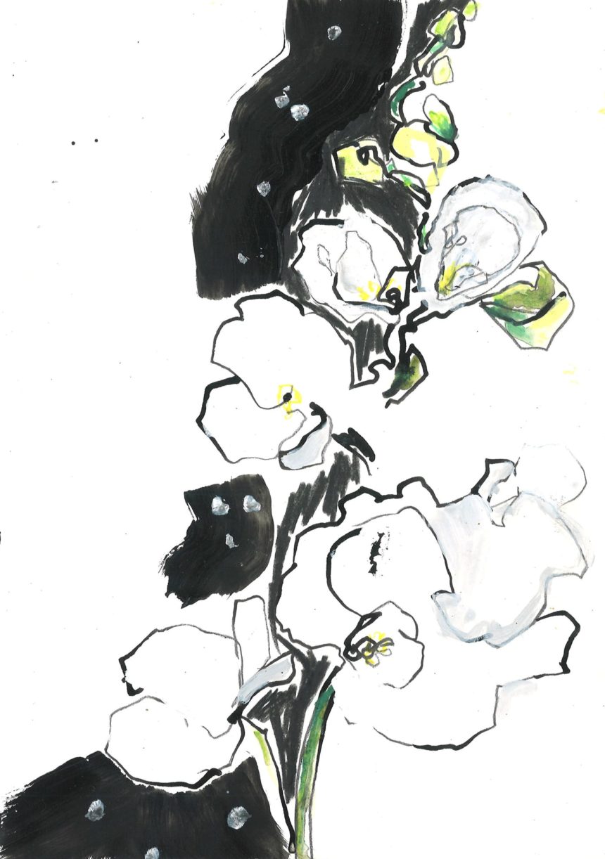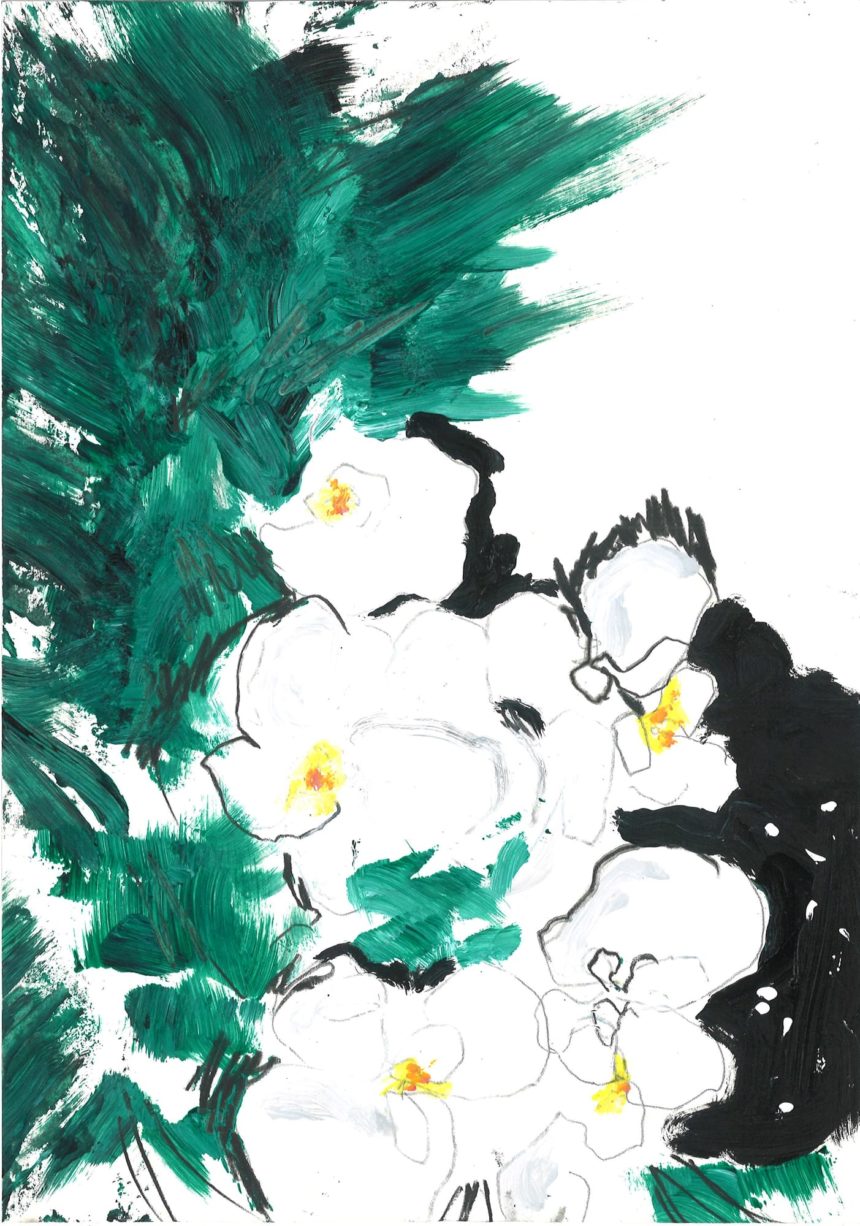 Illustration florale, technique mixte, peinture acrylique, crayon, stylo