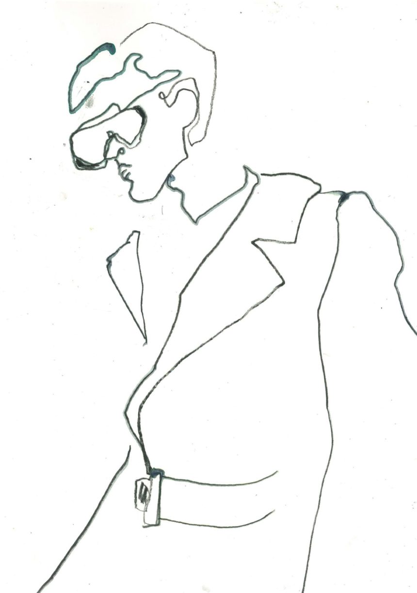 Illustrated portrait, quote, pen