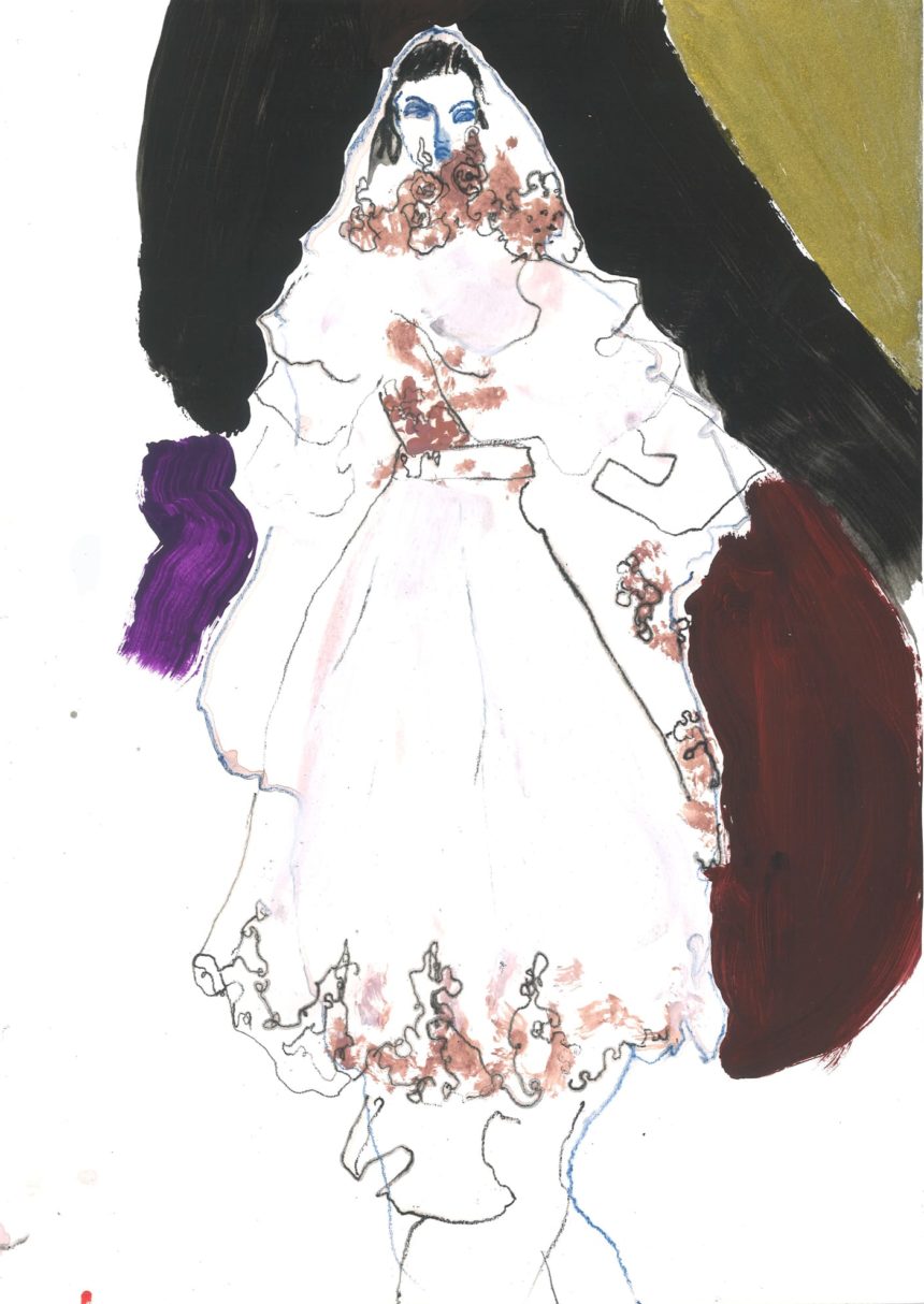Fashion illustration, mixed media, acrylic paint, pencil