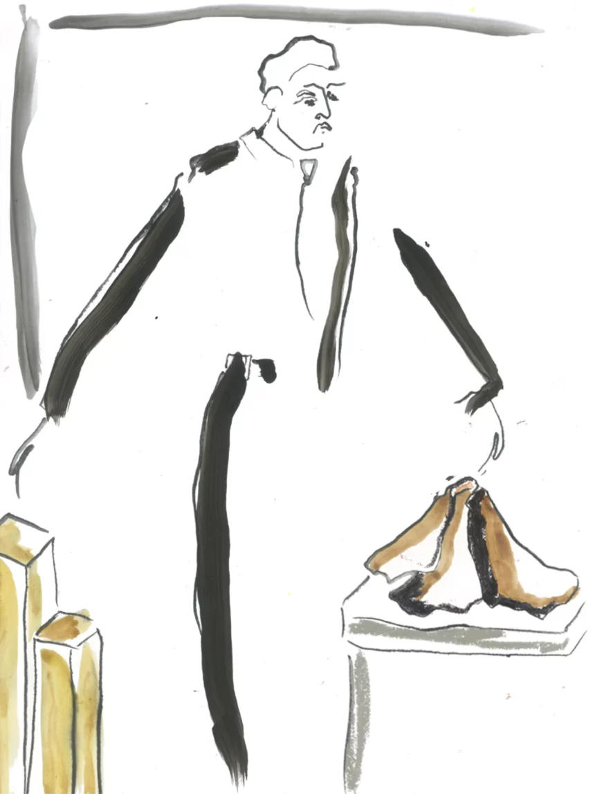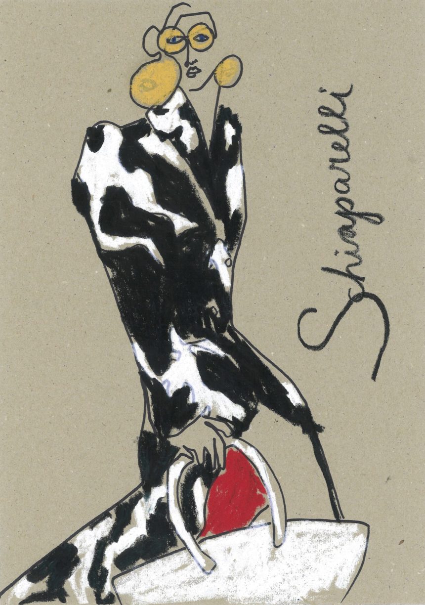 Illustration de mode, défilé, accessoires, pastel à huile