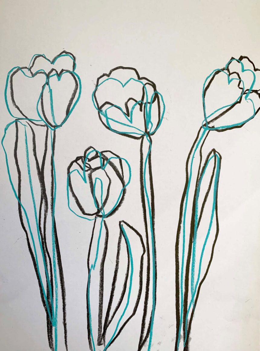 Floral painting, line drawing, flowers, nature