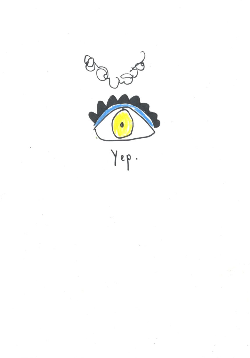 Portrait illustré, texte, stylo
