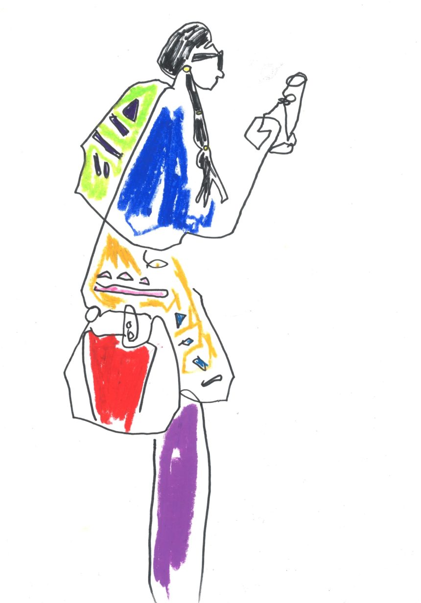 Fashion illustration, accessory, oil pastel