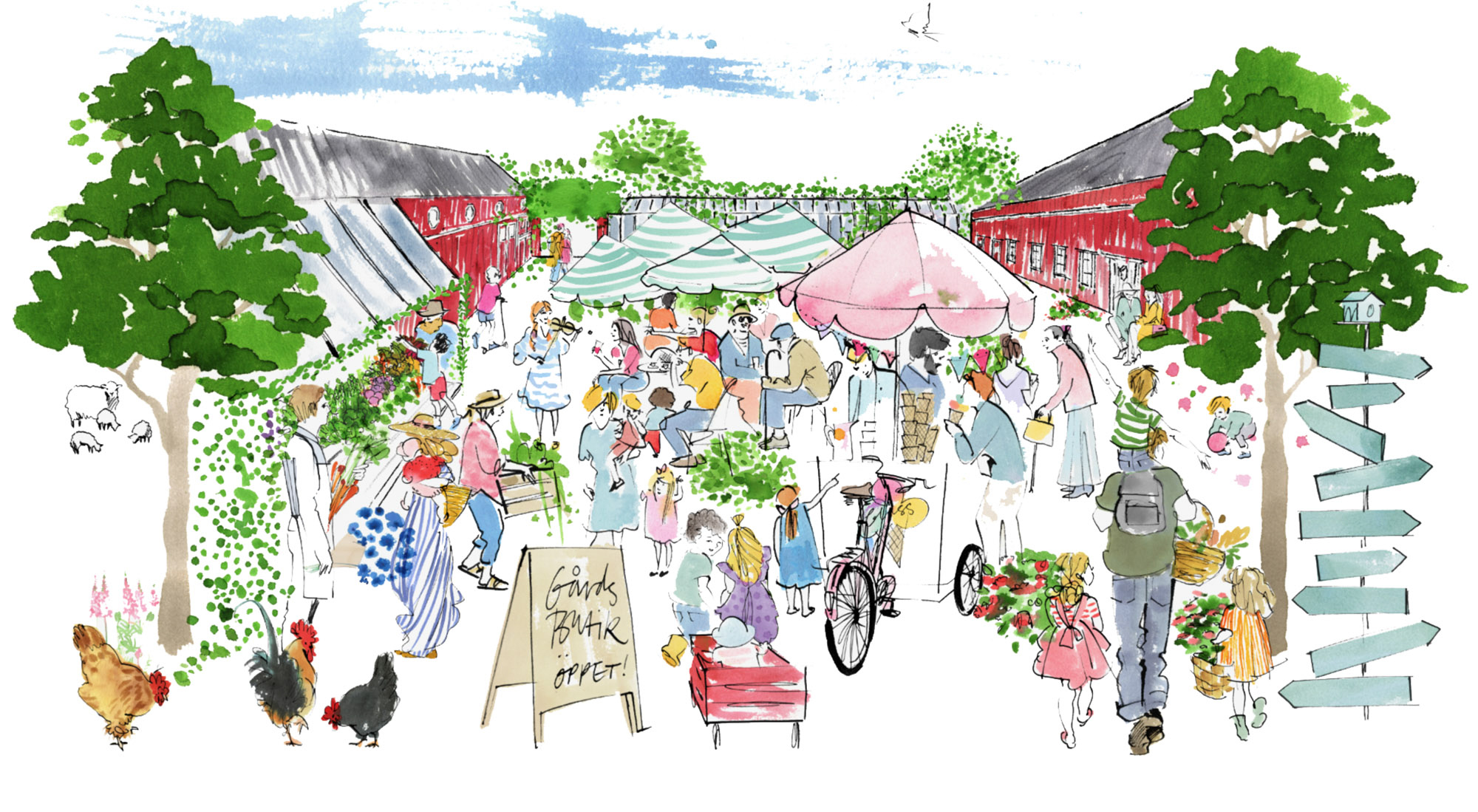 Fashion illustration, Paris, landscape, ink drawing