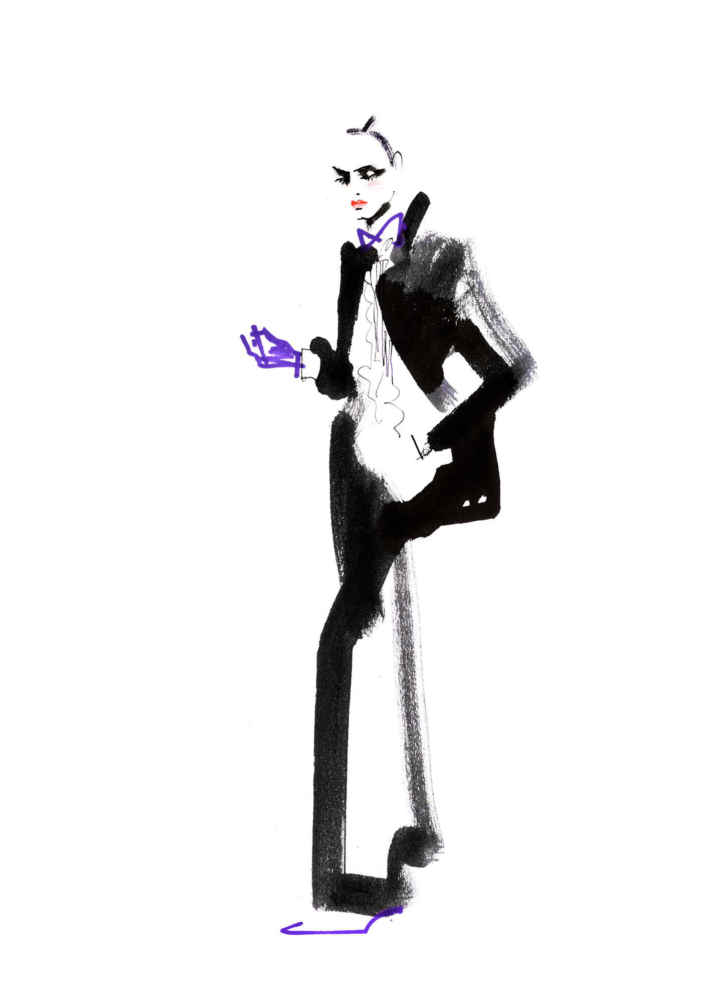 Black ink illustration of fashion silhouette