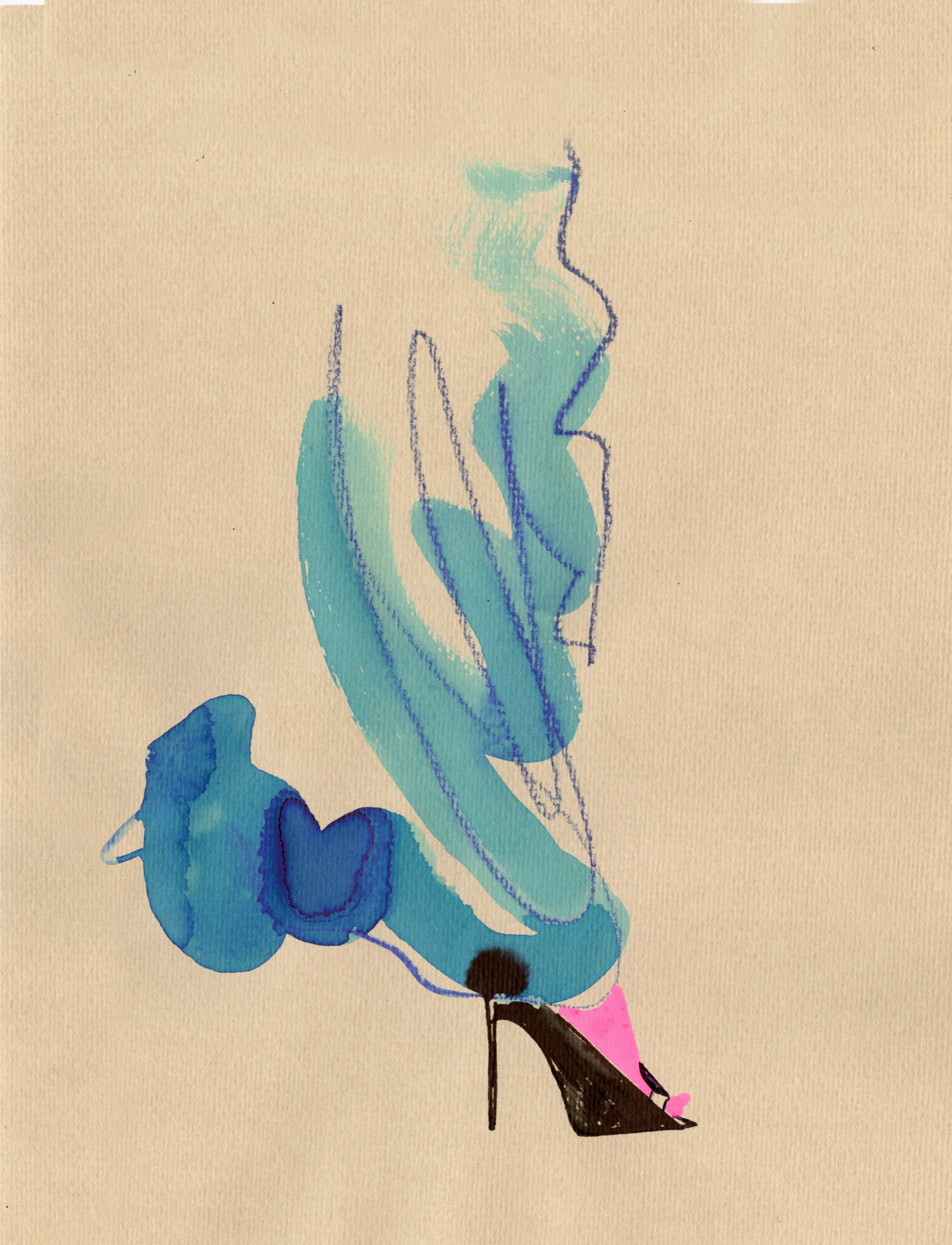 Fashion illustration, couture, runway, ink drawing