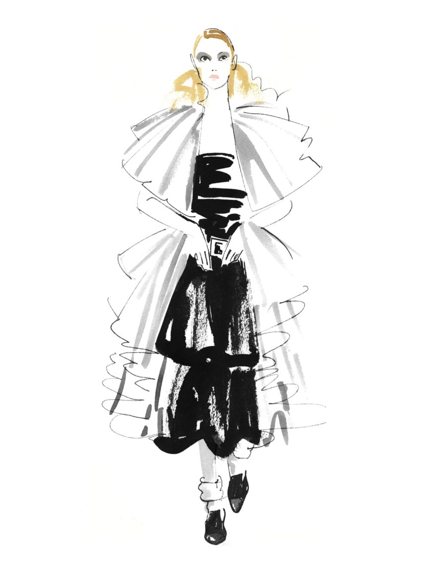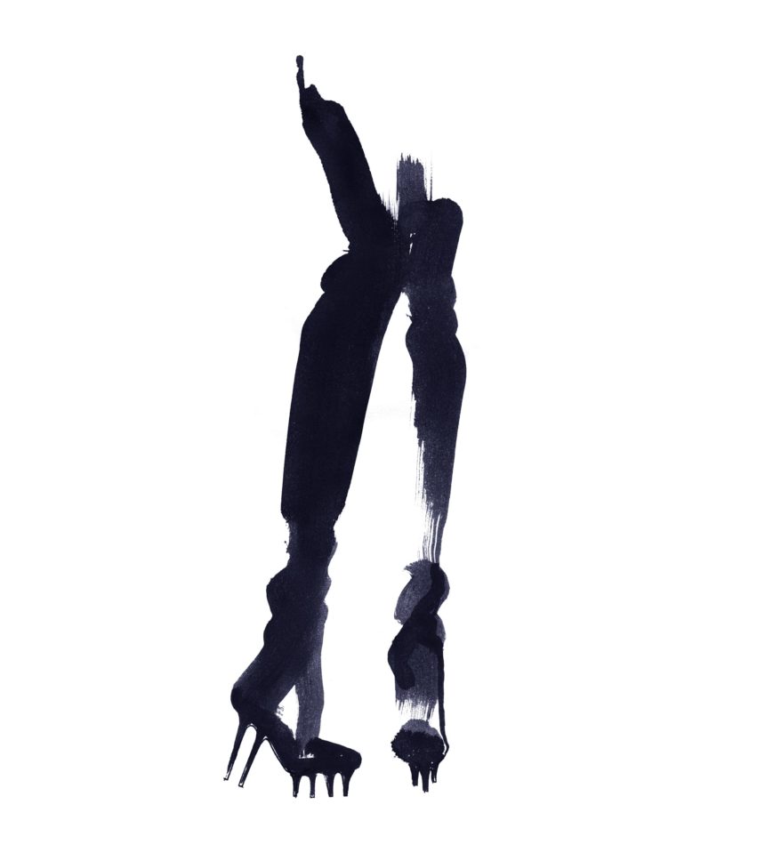 Illustration of lying silhouette in front of the Paris skyline. H&M logo with illustrations by Lovisa Burfitt Fashion illustrator Lovisa Burfitt for Hemtex, Paris Please Ink illustration fo the Bangska Palatset.