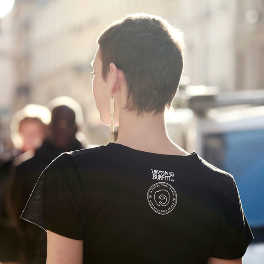 Illustration of lying silhouette in front of the Paris skyline. H&M logo with illustrations by Lovisa Burfitt Fashion illustrator Lovisa Burfitt for Hemtex, Paris Please Ink illustration fo the Bangska Palatset.