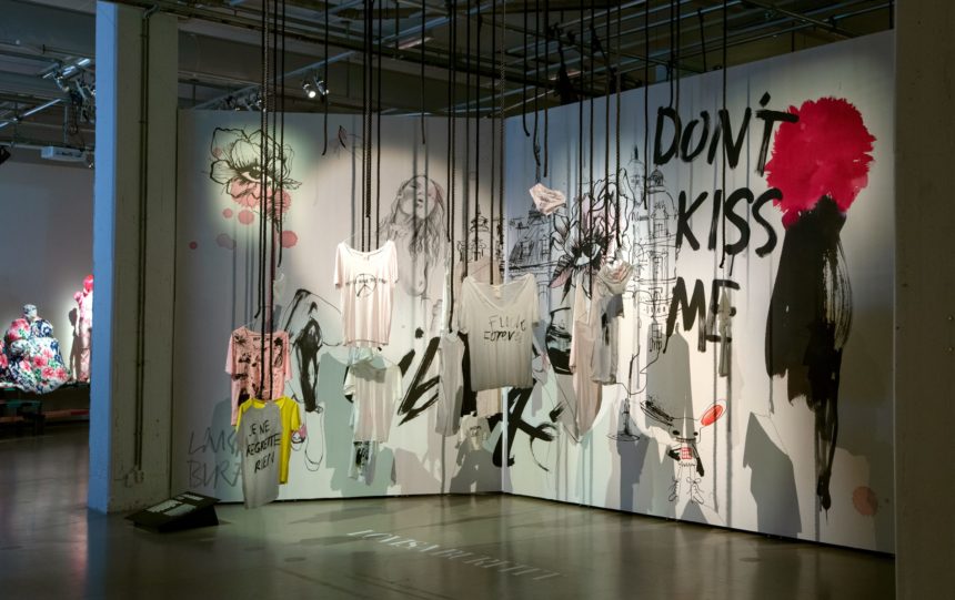 Illustration of lying silhouette in front of the Paris skyline. H&M logo with illustrations by Lovisa Burfitt Fashion illustrator Lovisa Burfitt for Hemtex, Paris Please Ink illustration fo the Bangska Palatset.