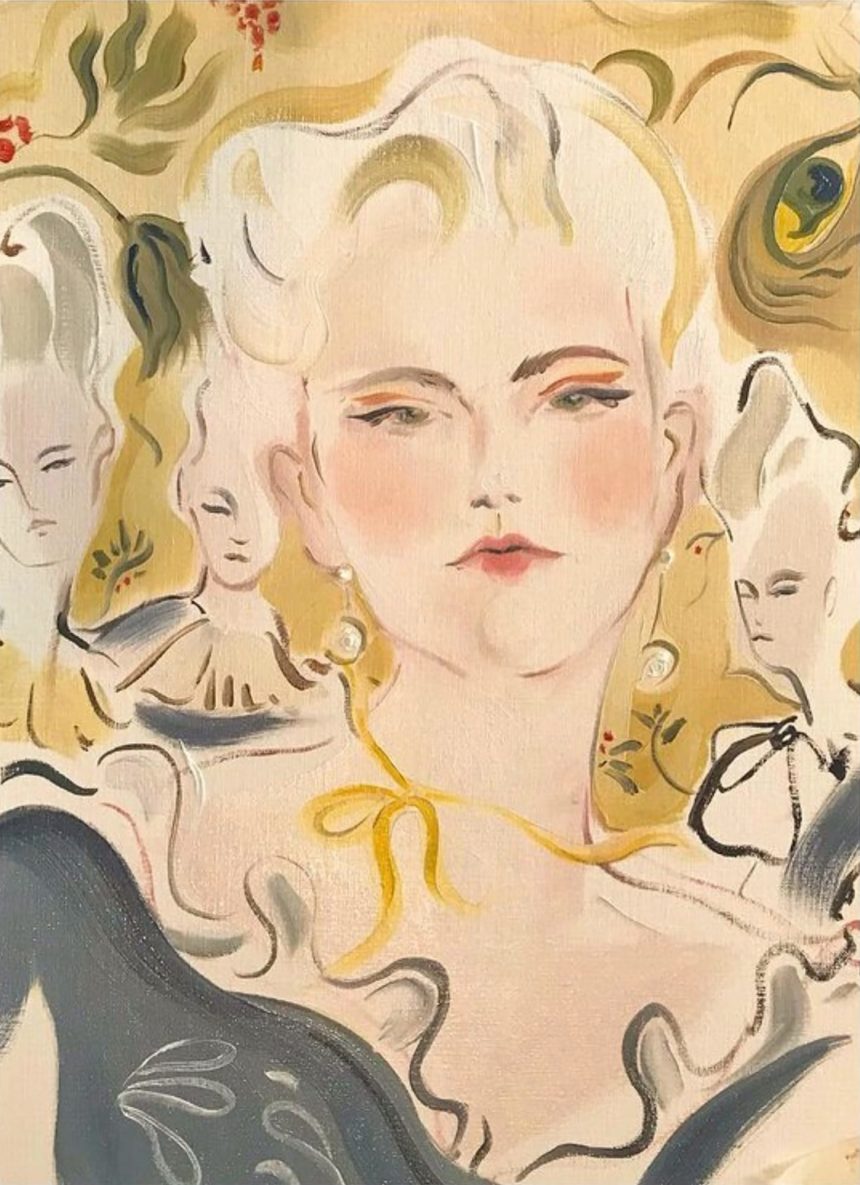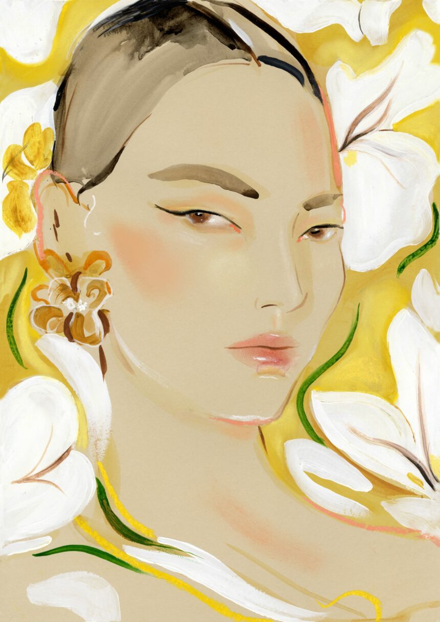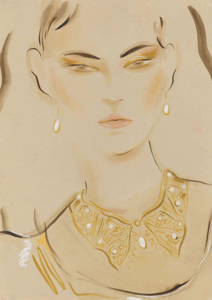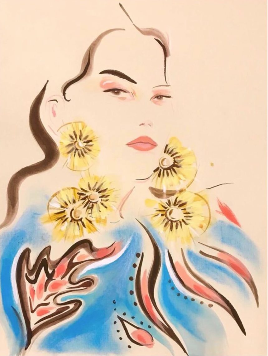 Fashion illustration, portrait, beauty, accessories, mixed media