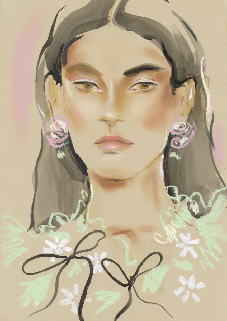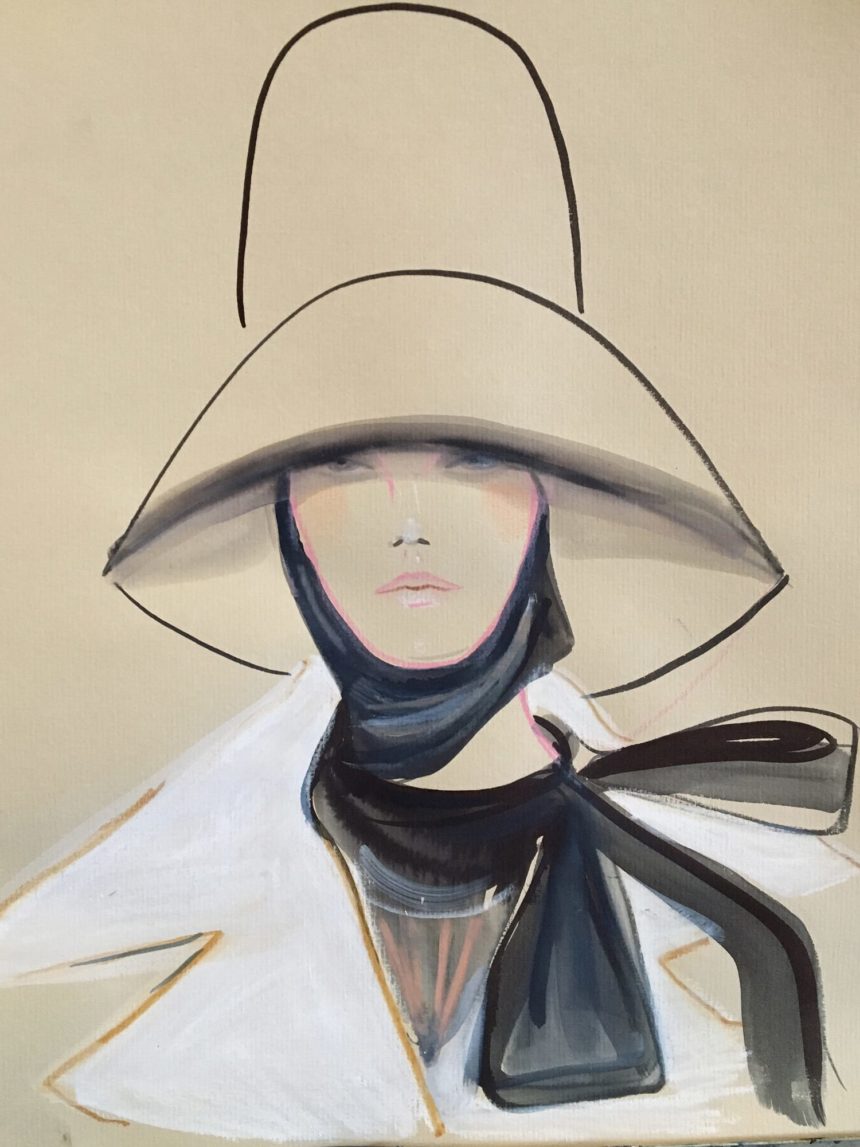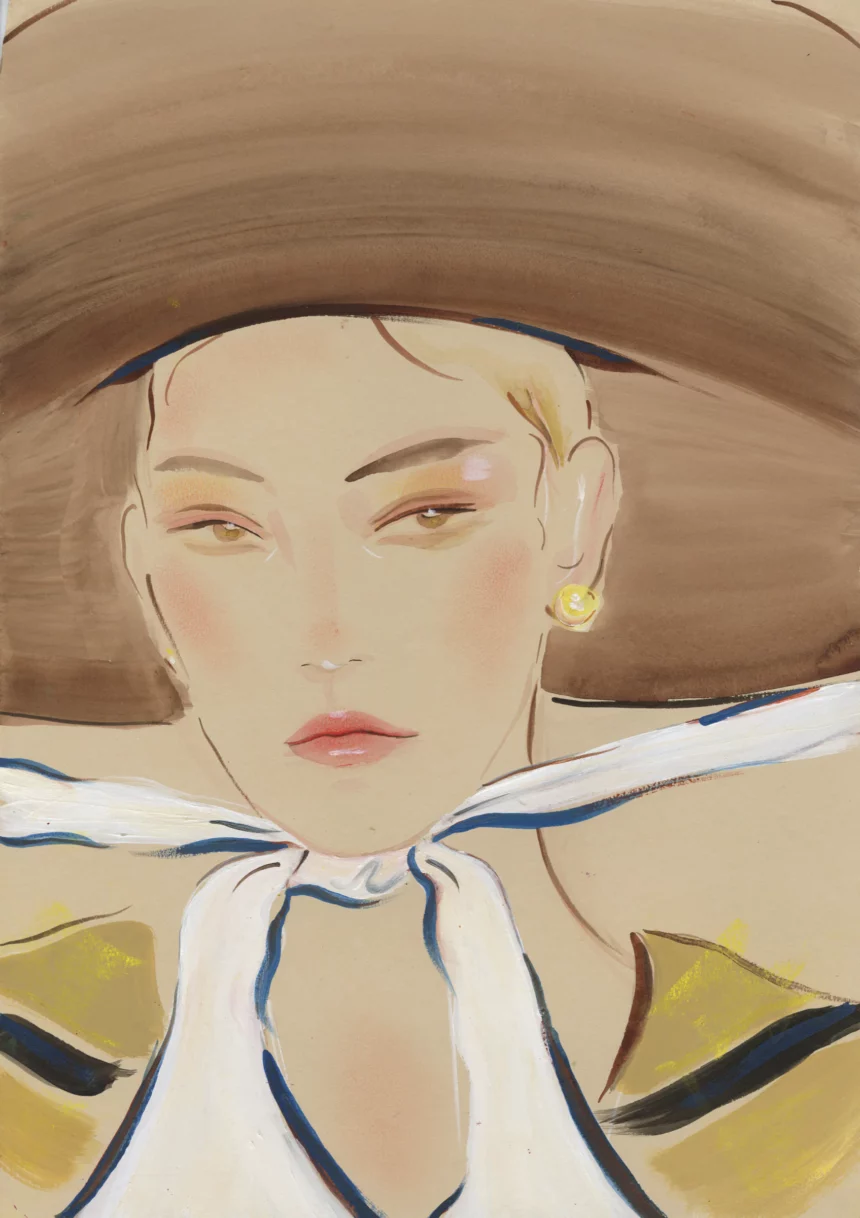 Fashion illustration, portrait, accessory, beauty, mixed media