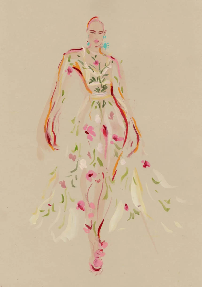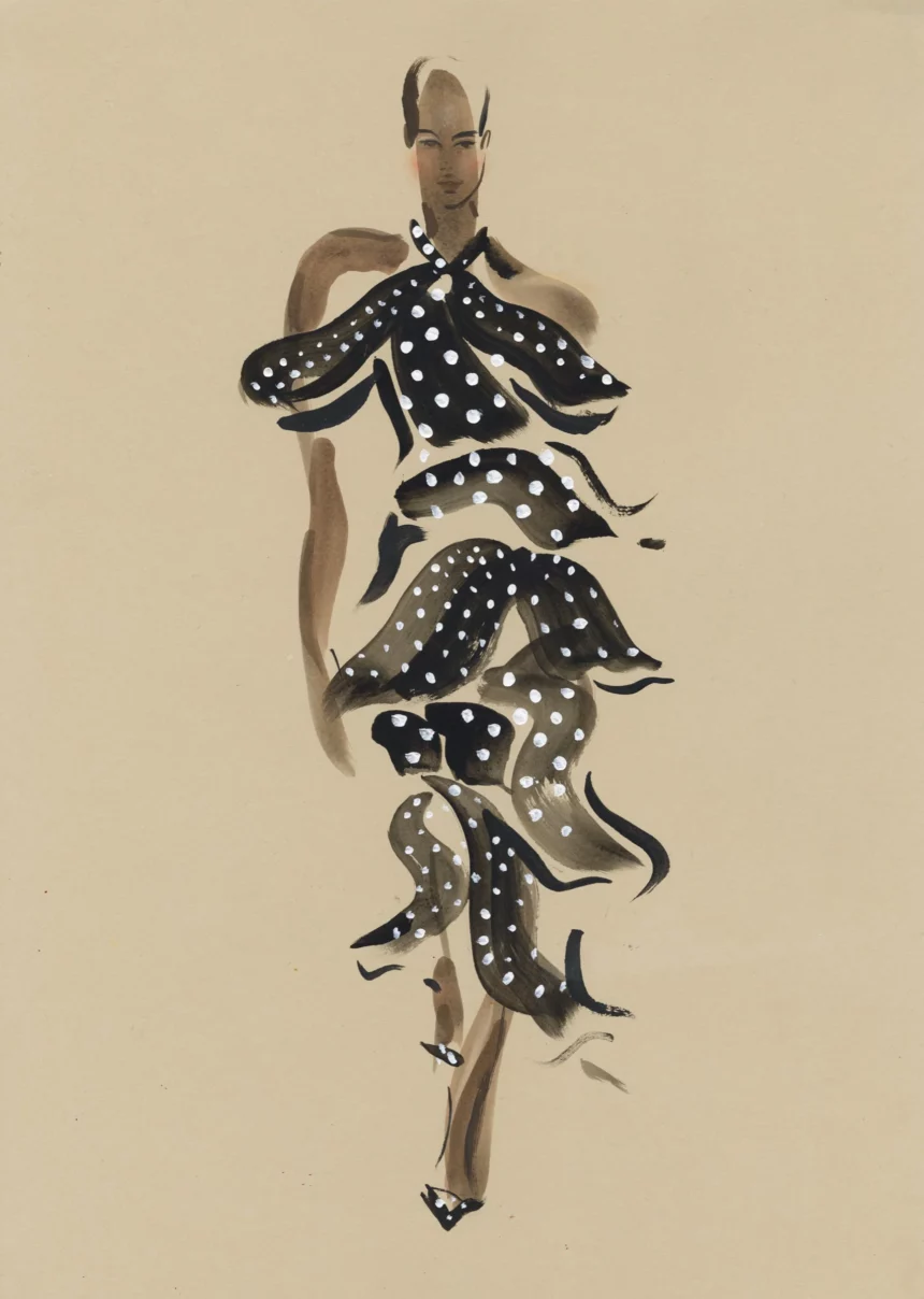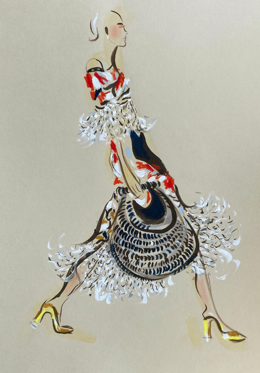 Illustration de mode, défilé, silhouette, techniques mixtes