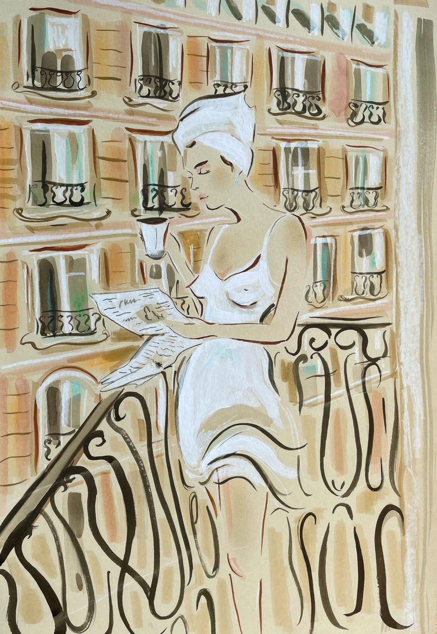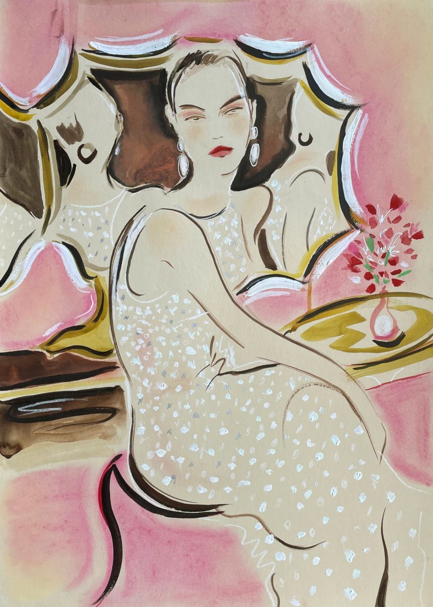 Illustration de mode, personnage, beauté, accessoires, techniques mixtes
