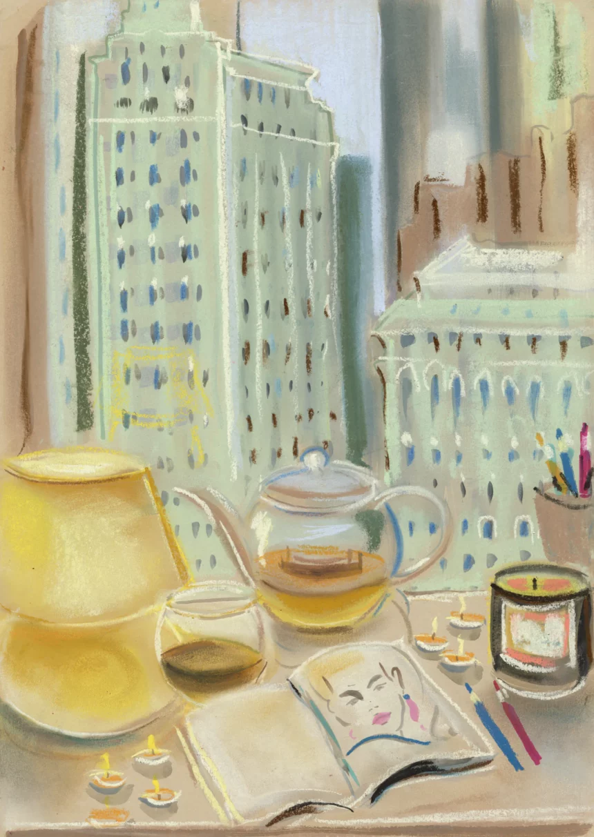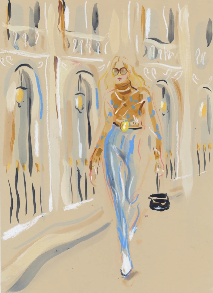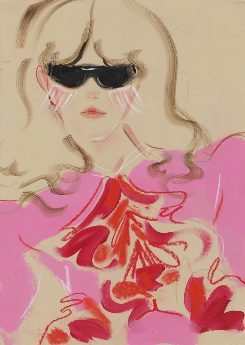 Illustration de mode, accessoires, personnage, beauté, techniques mixtes