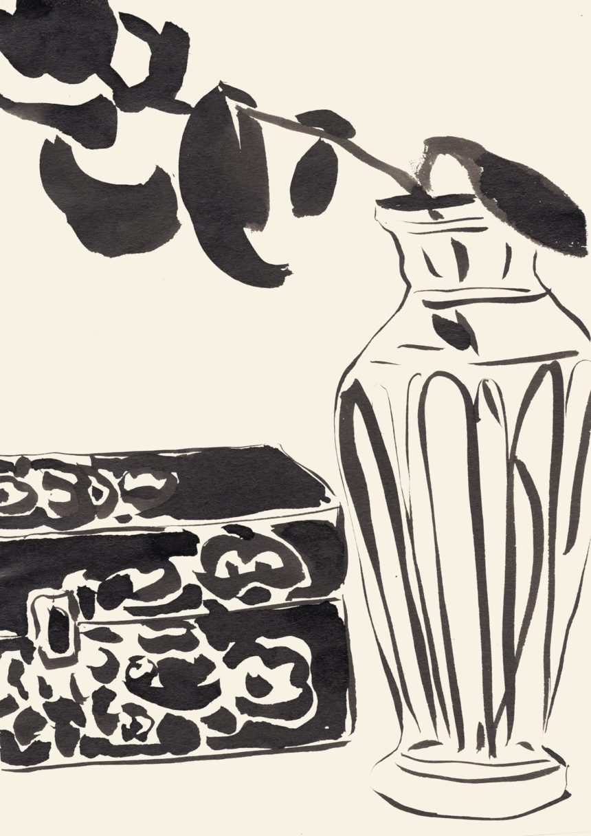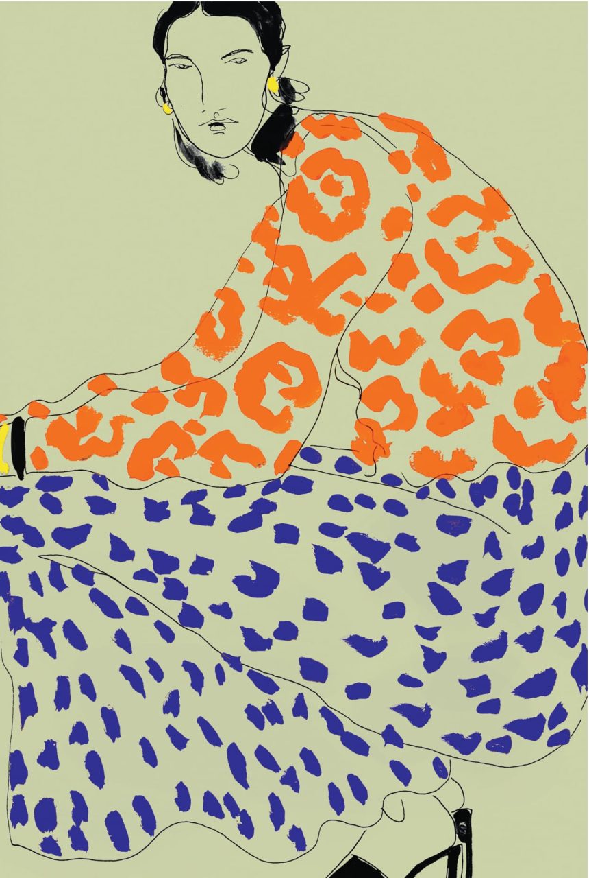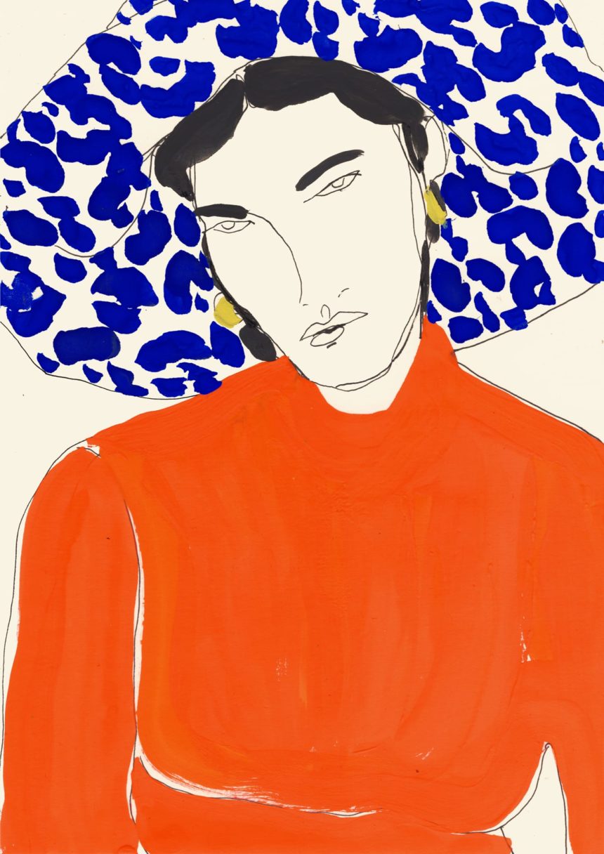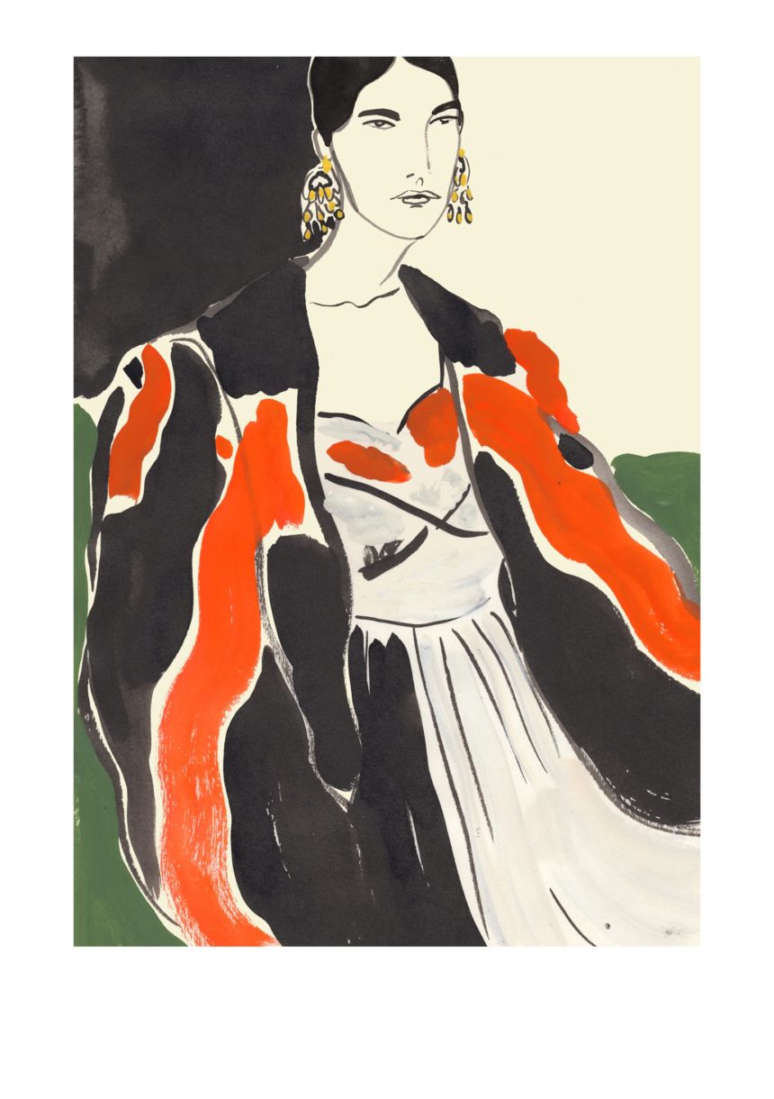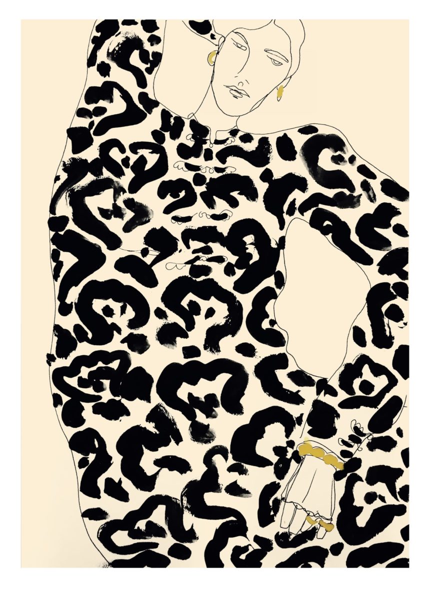 Figurative drawing, ink, accessories, pattern, fashion illustration