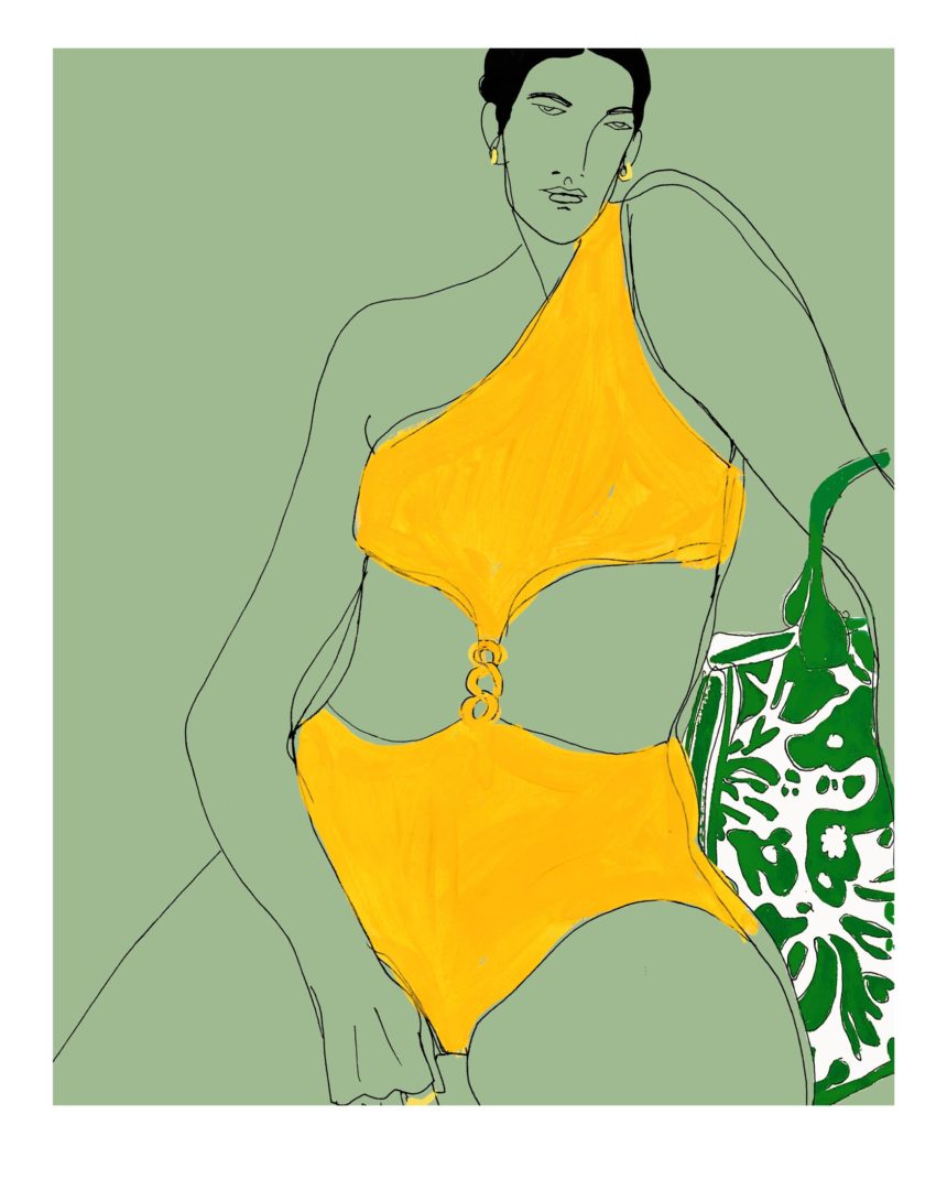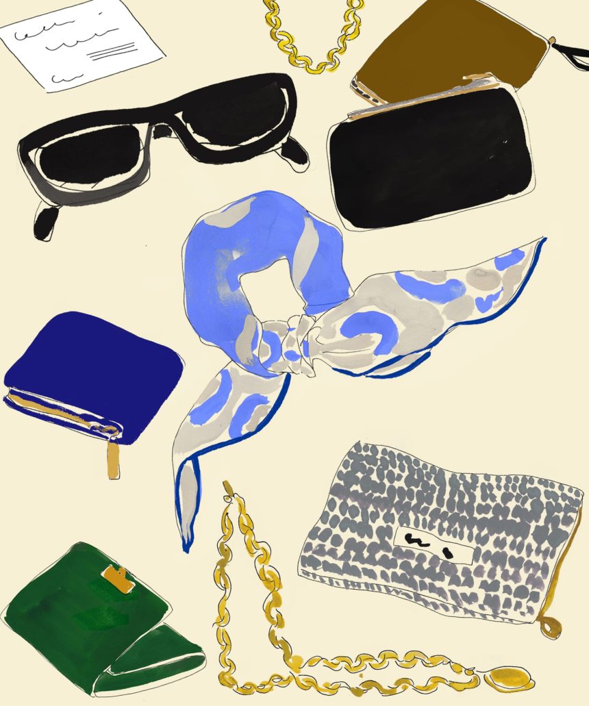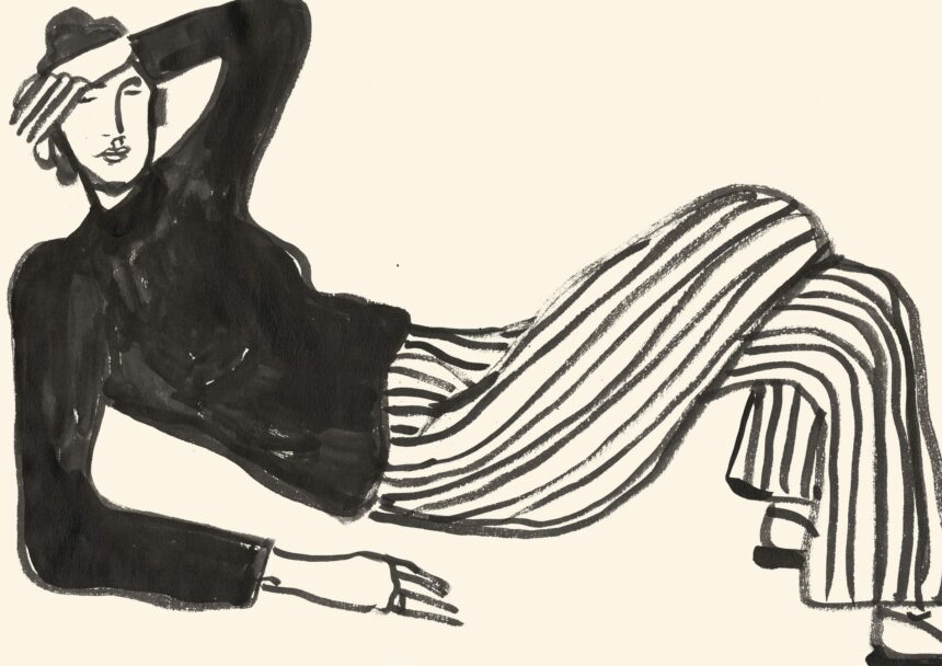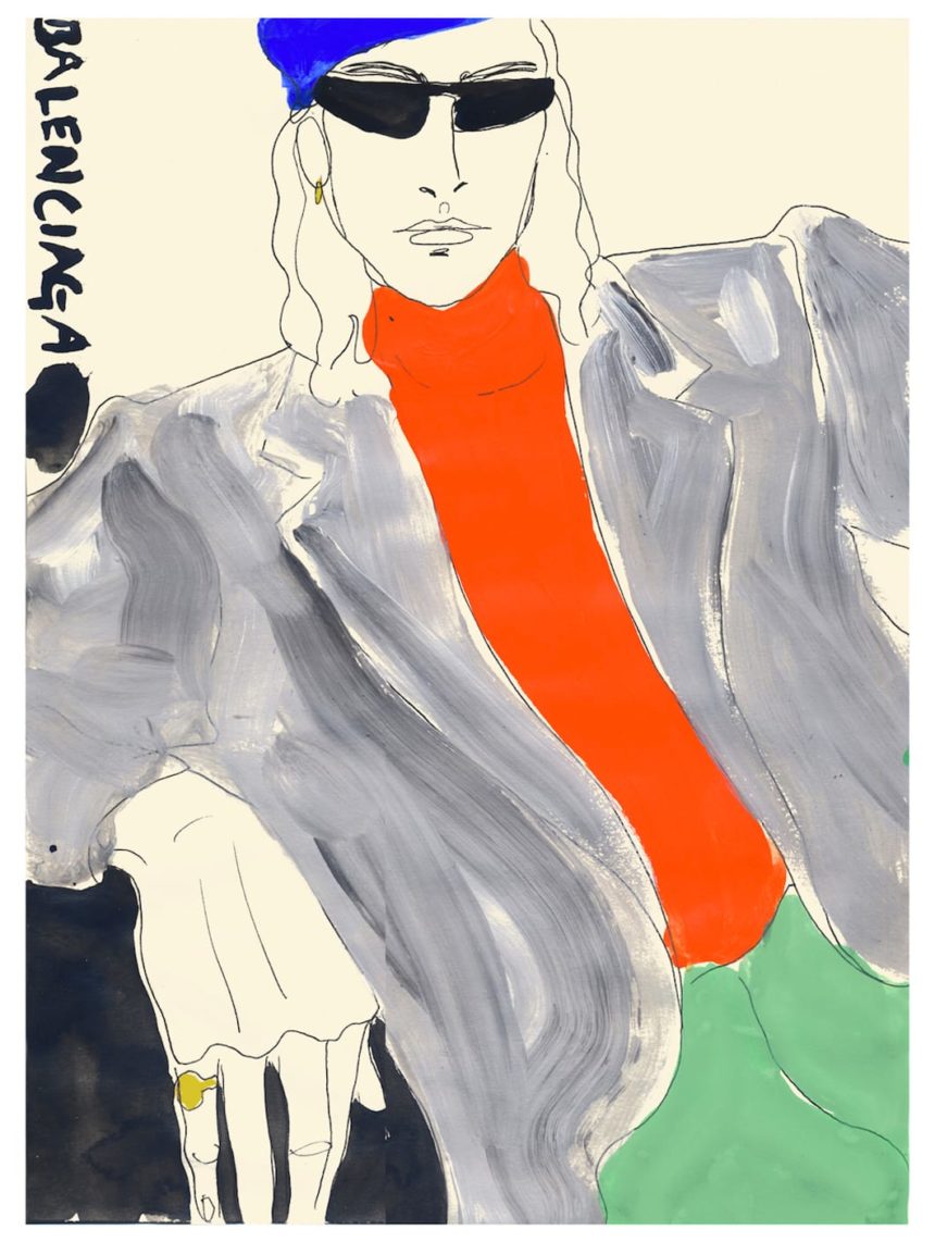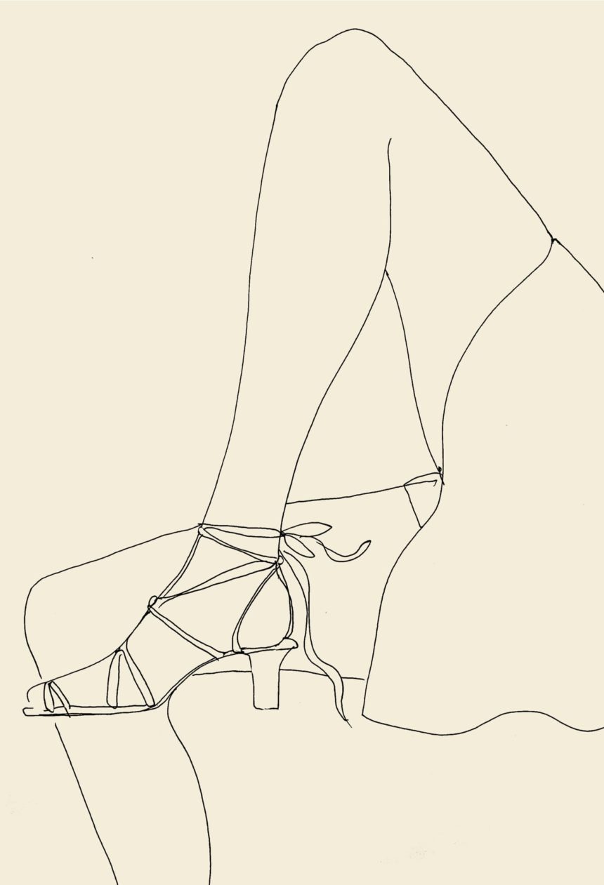 Figurative drawing, ink, accessories, pattern, fashion illustration