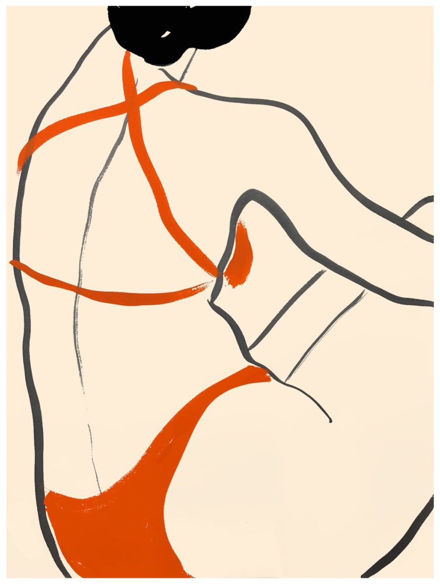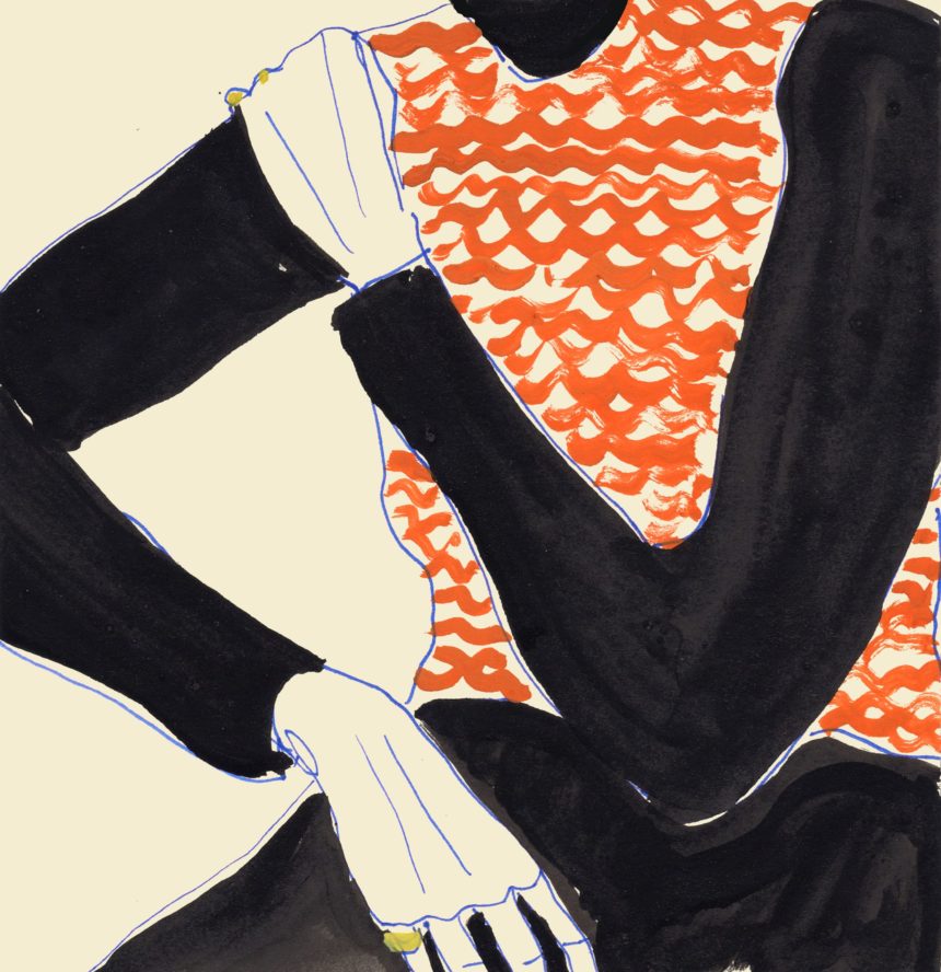 Figurative drawing, ink, paint, pattern, fashion illustration