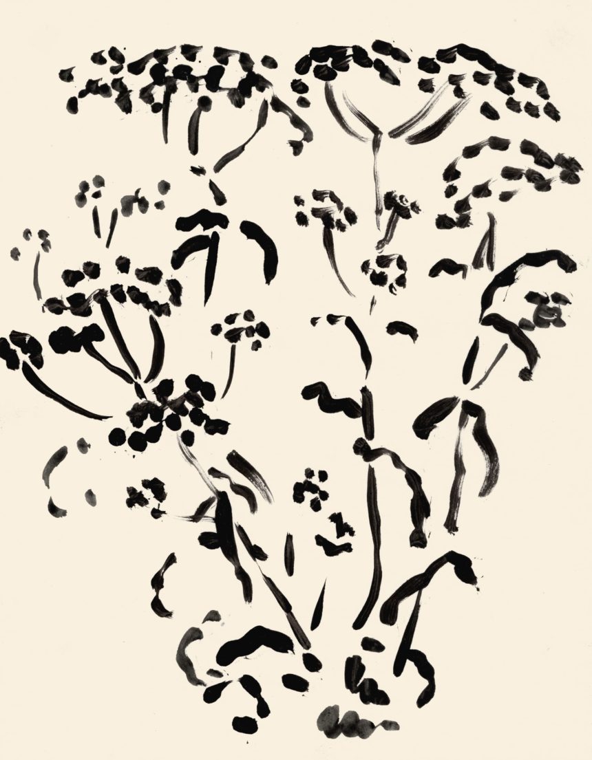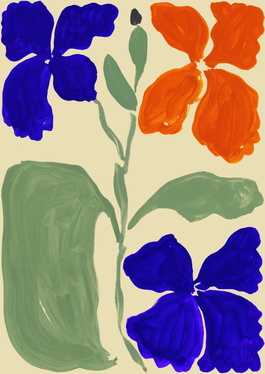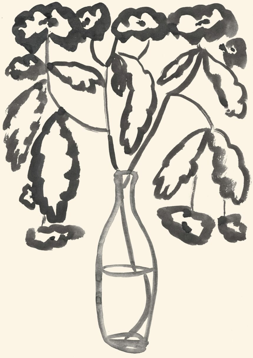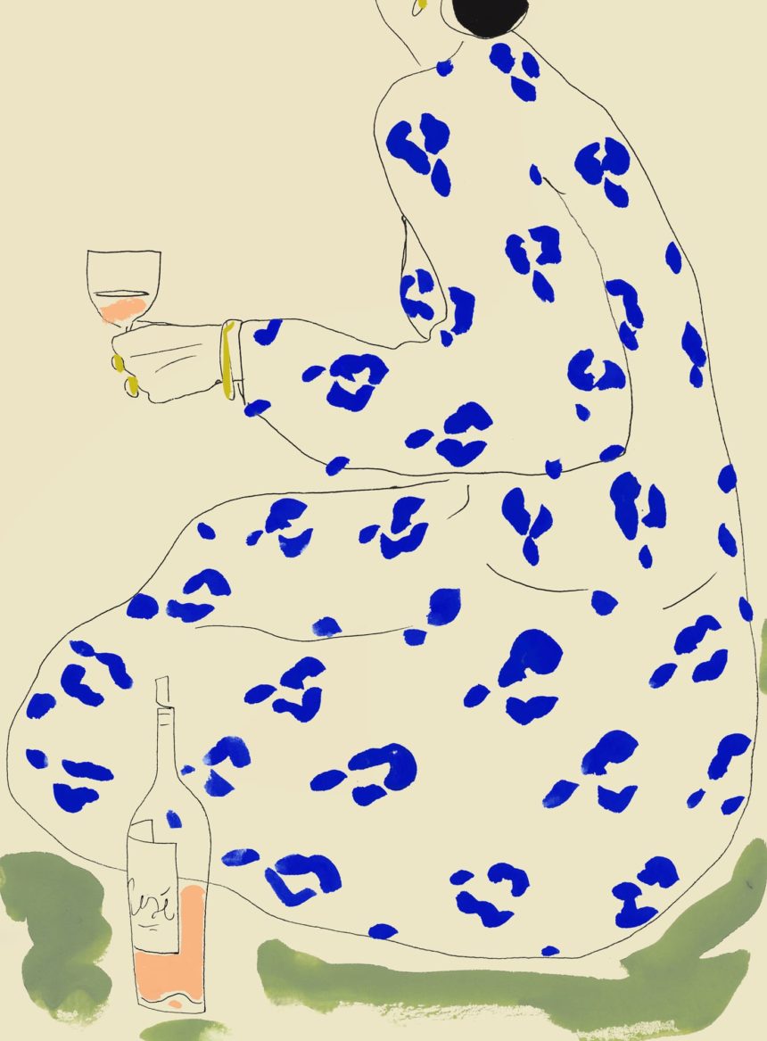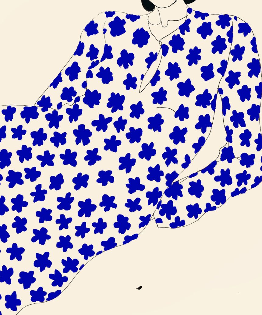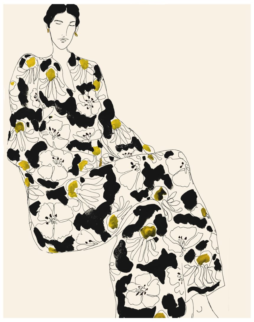 Figurative drawing, ink, paint, flower pattern, fashion illustration