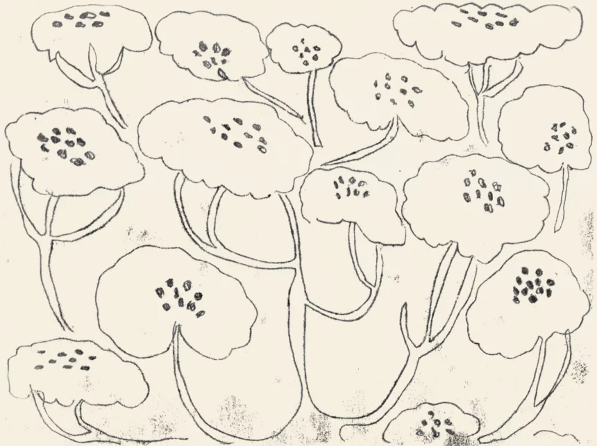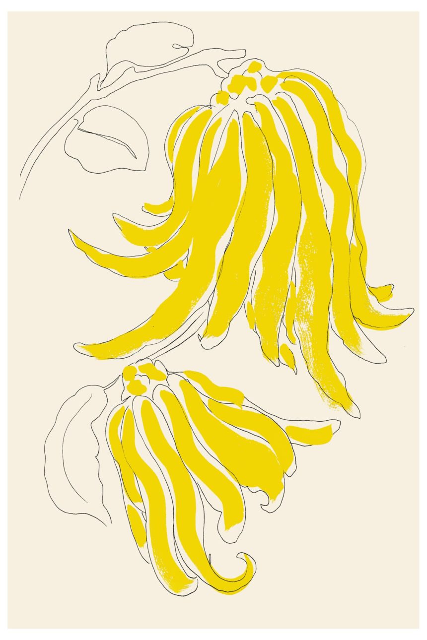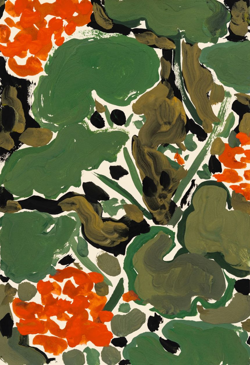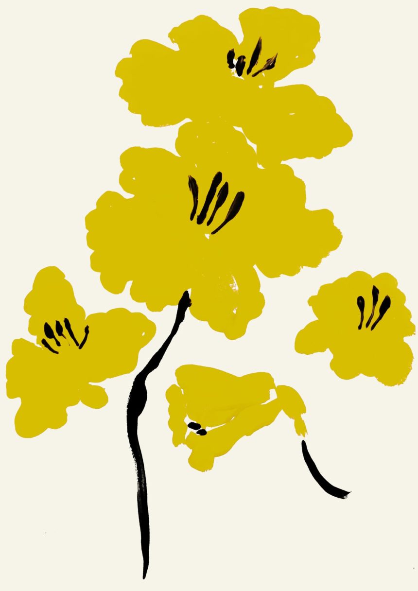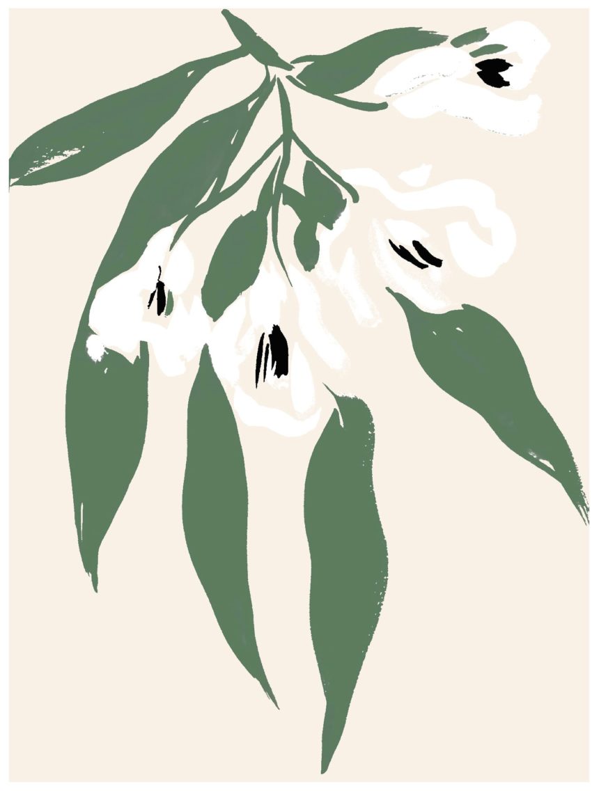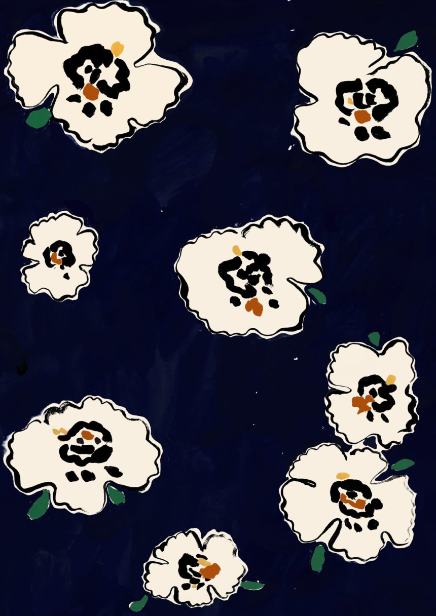 Figurative drawing, ink, paint, flower pattern, fashion illustration