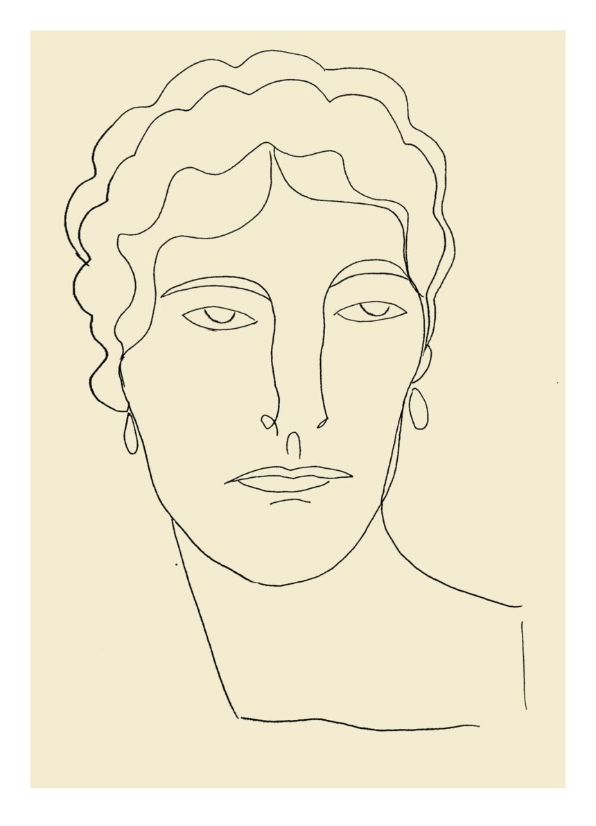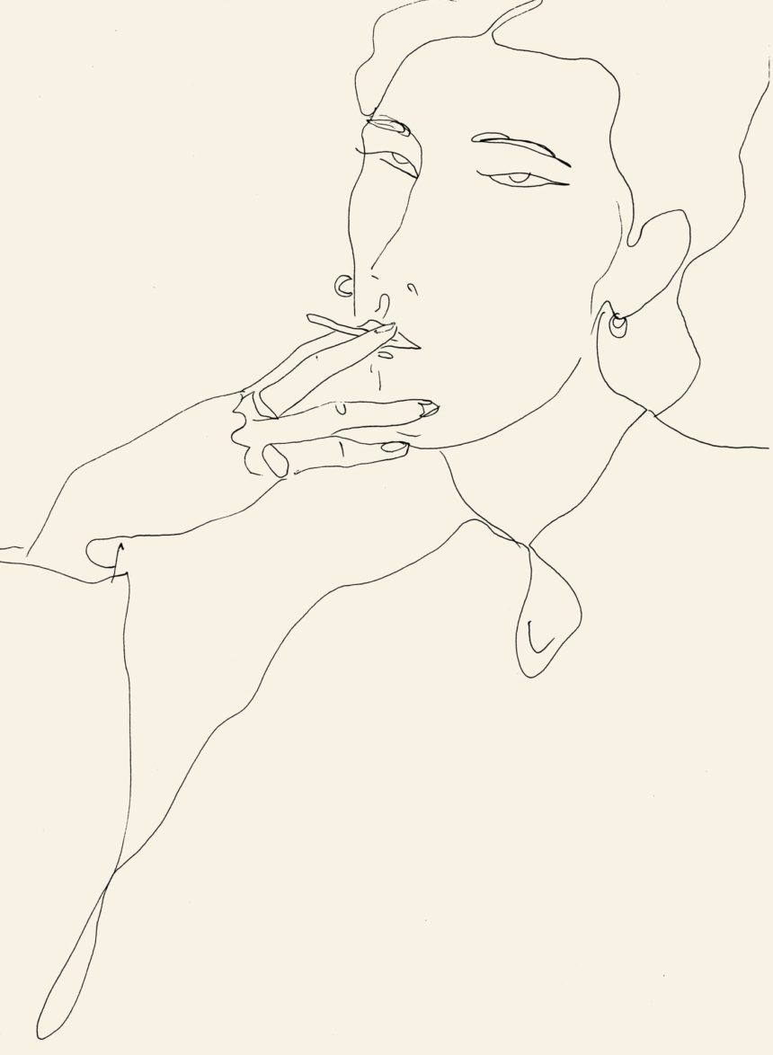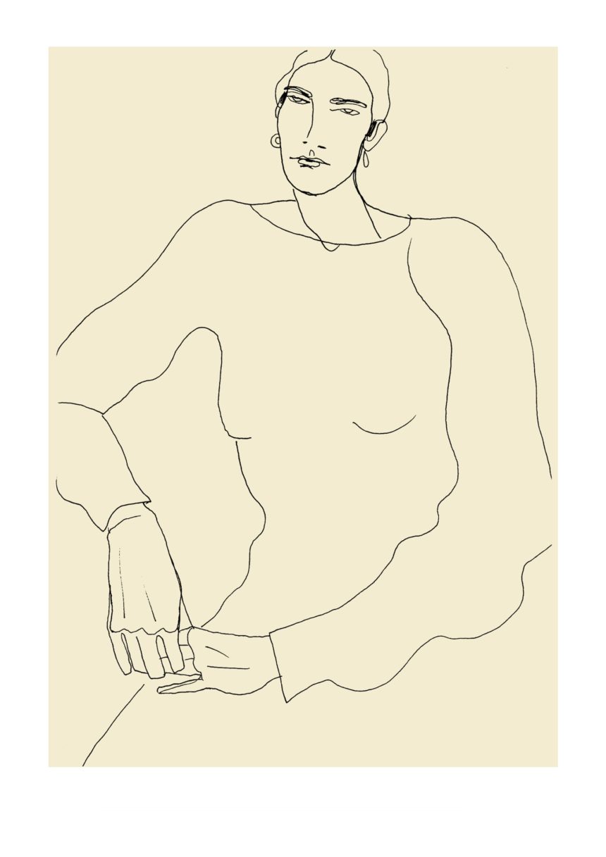 Figurative drawing, ink, accessory, portrait, fashion illustration