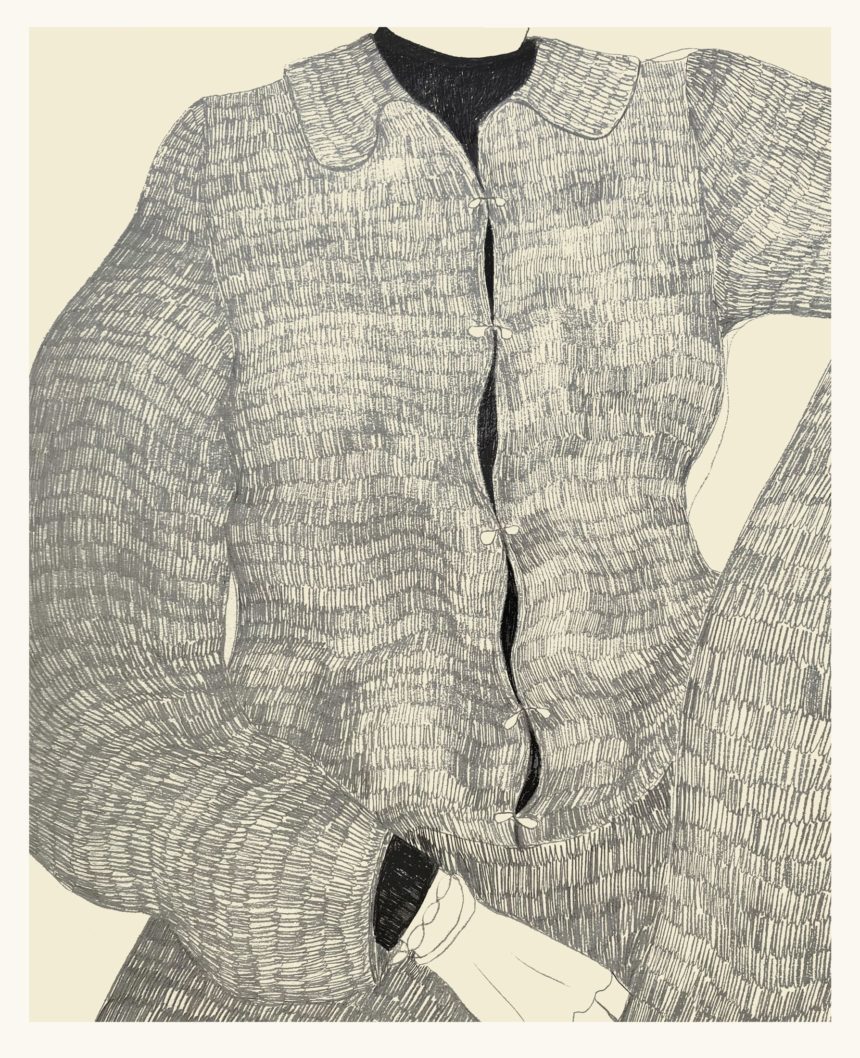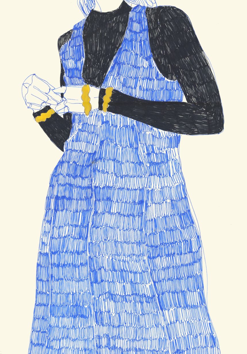 Figurative drawing, ink, pattern, portrait, fashion illustration