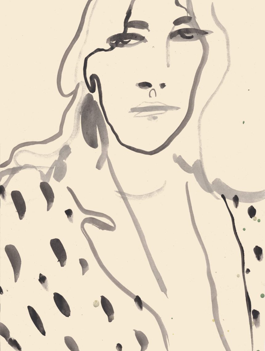 Figurative drawing, ink, paint, portrait, fashion illustration