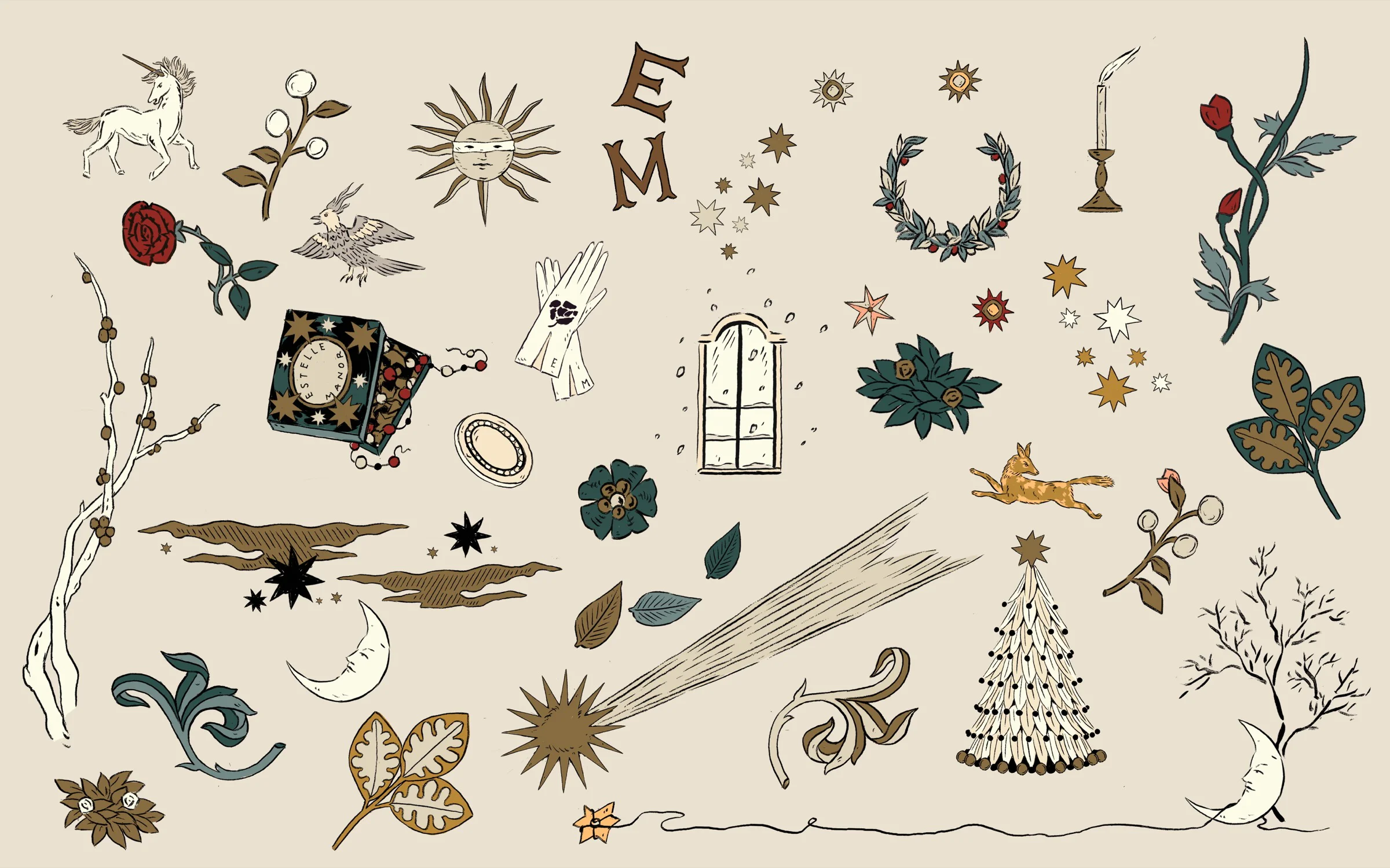 Illustrations pour les fêtes de fin d'année, dessins au trait