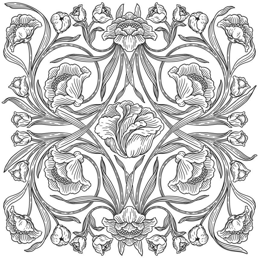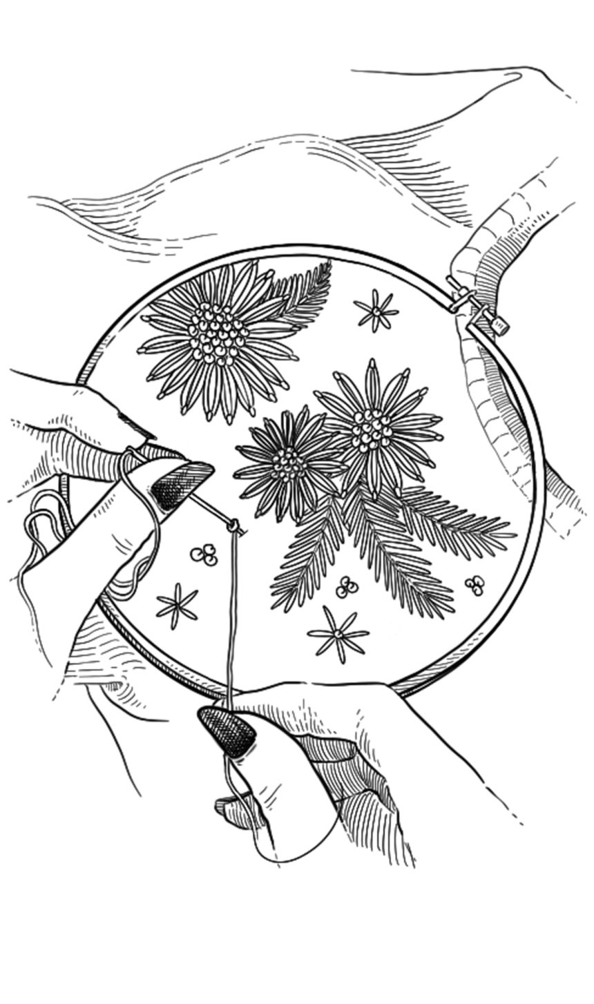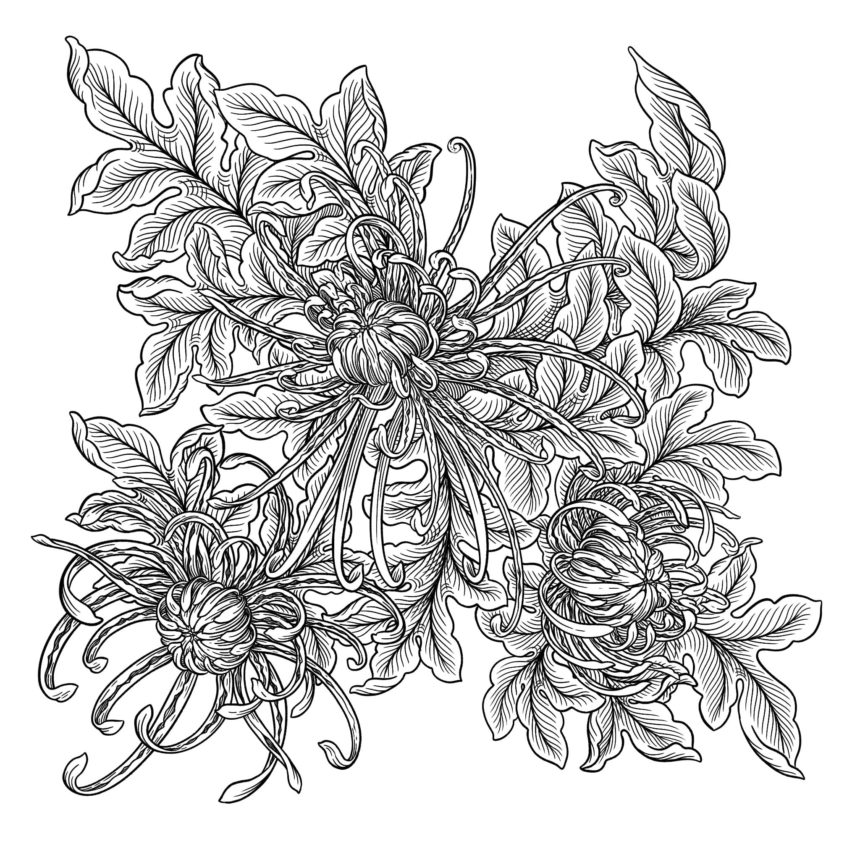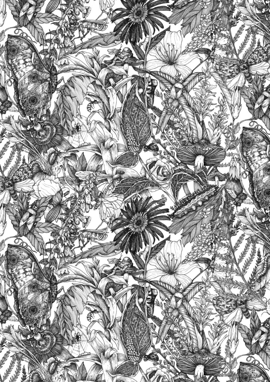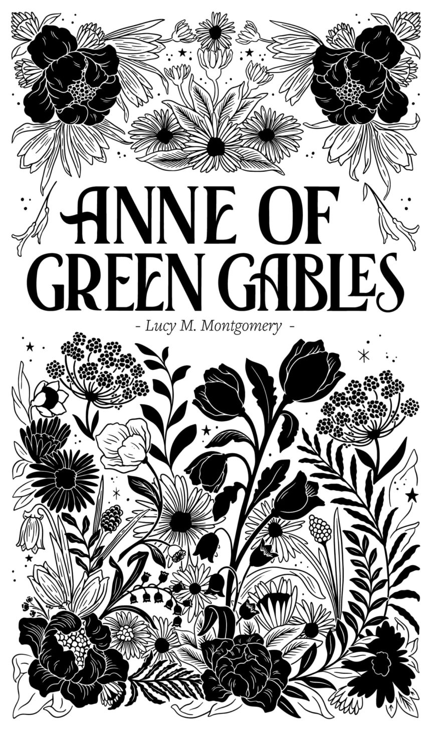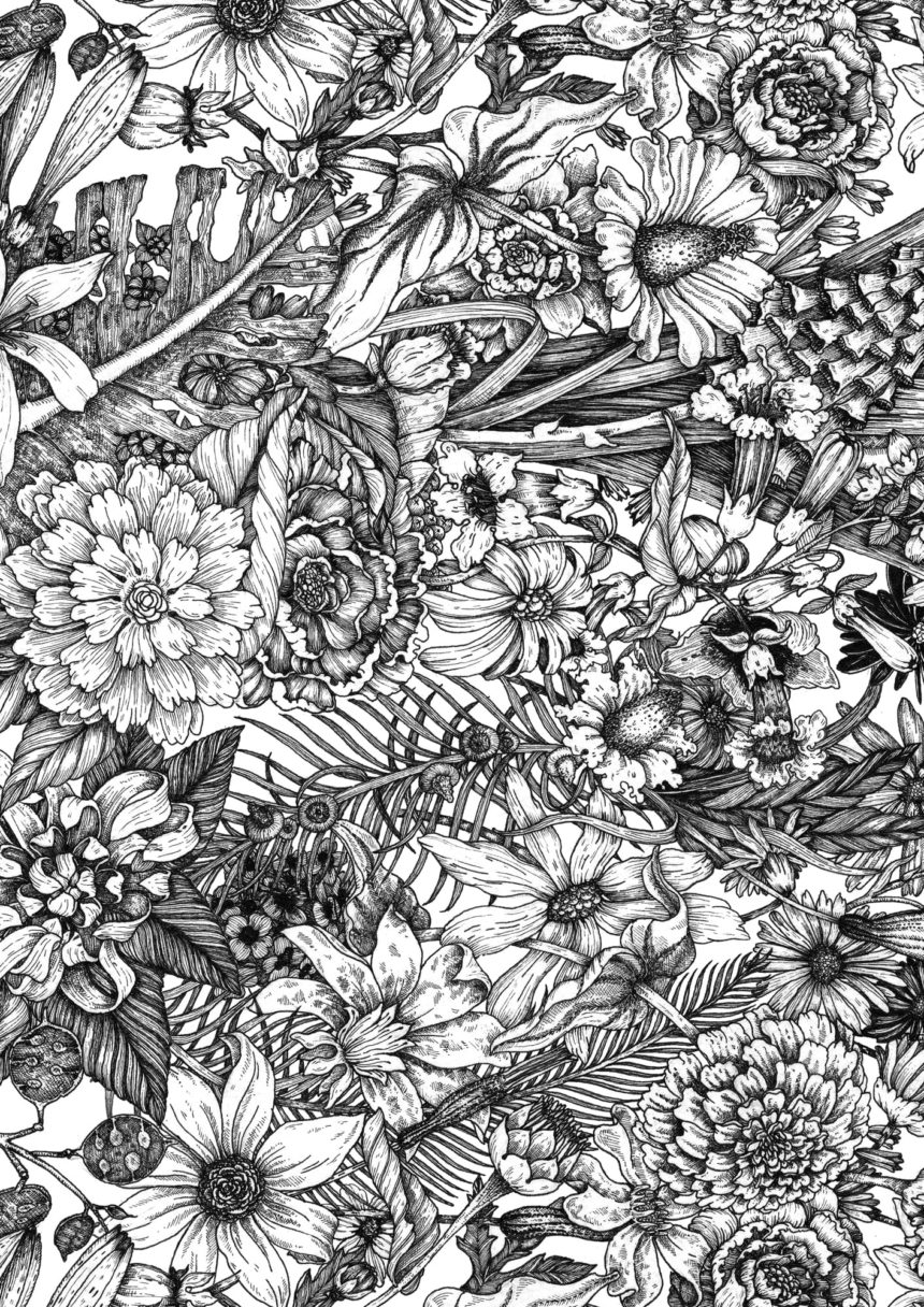 Couverture, illustration au trait, gravure, fleurs, pattern floral