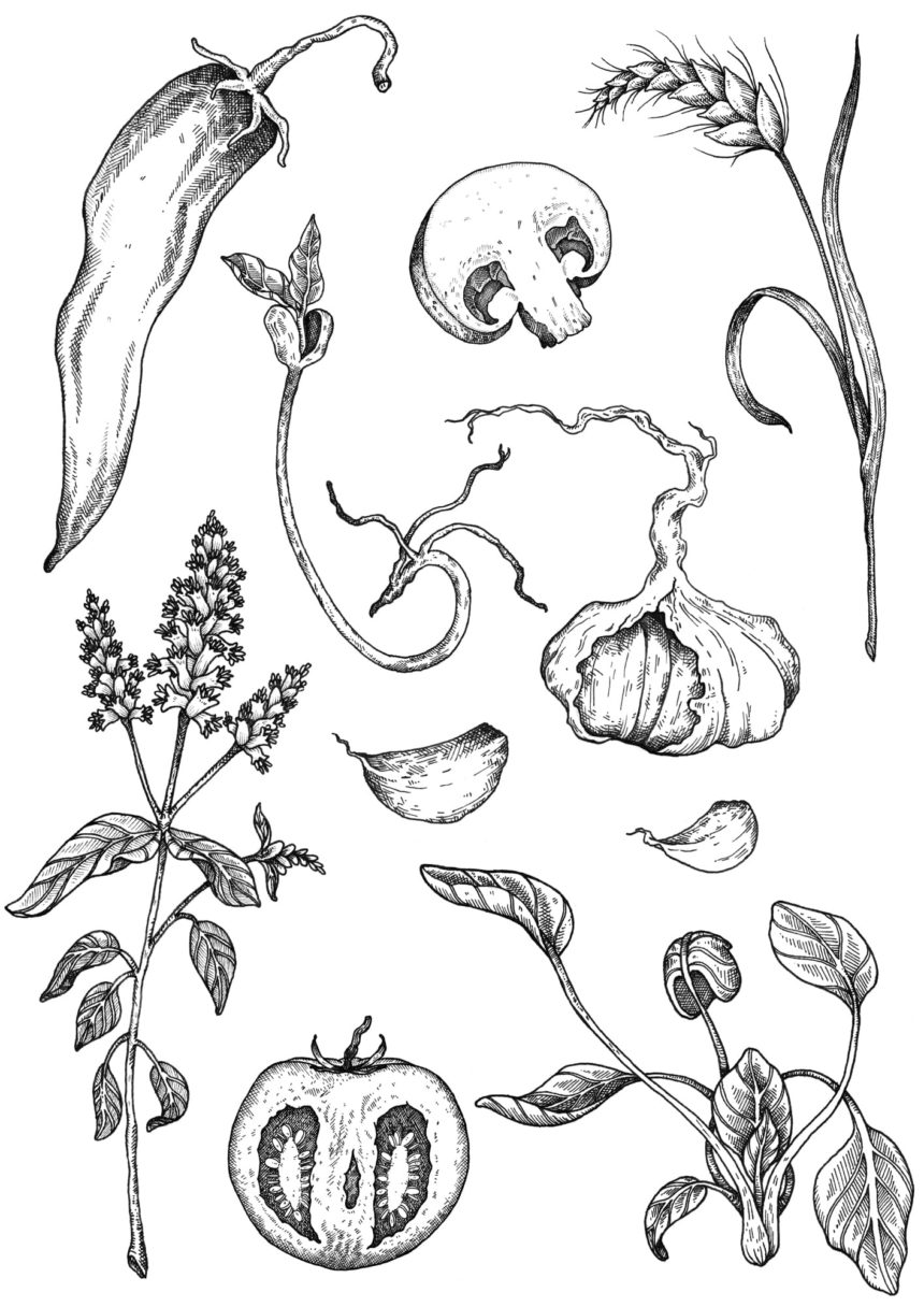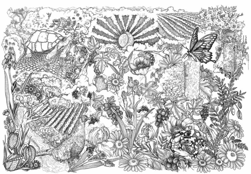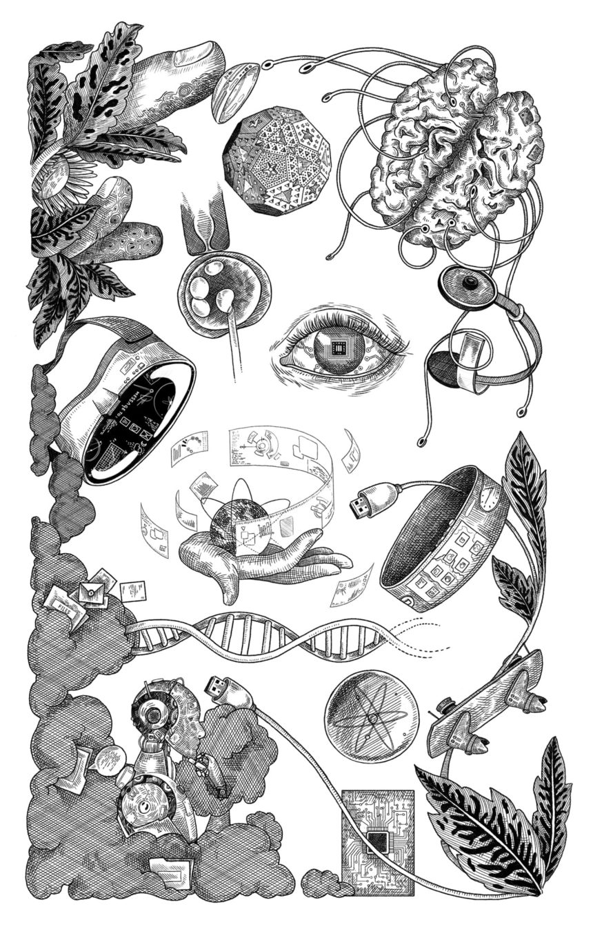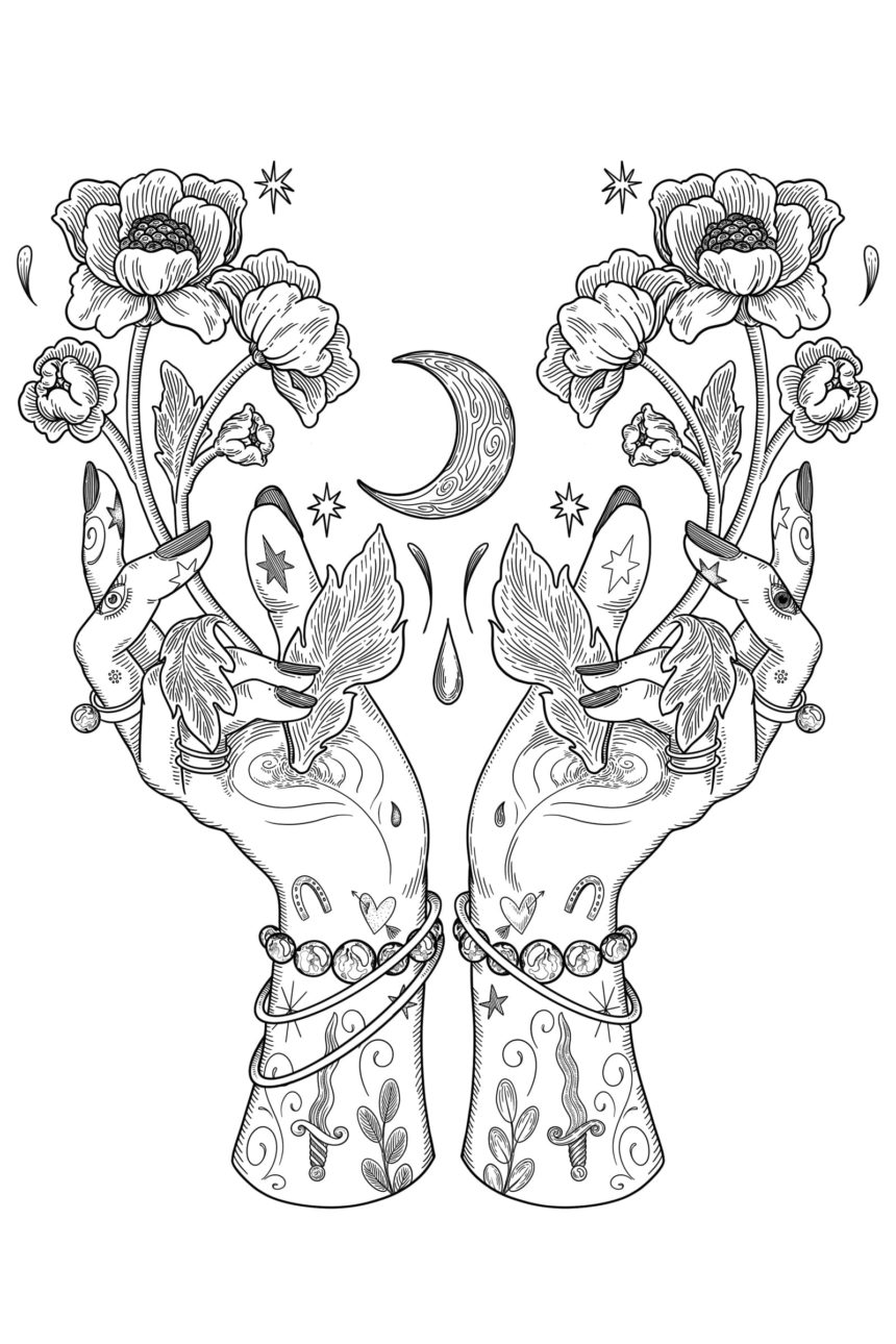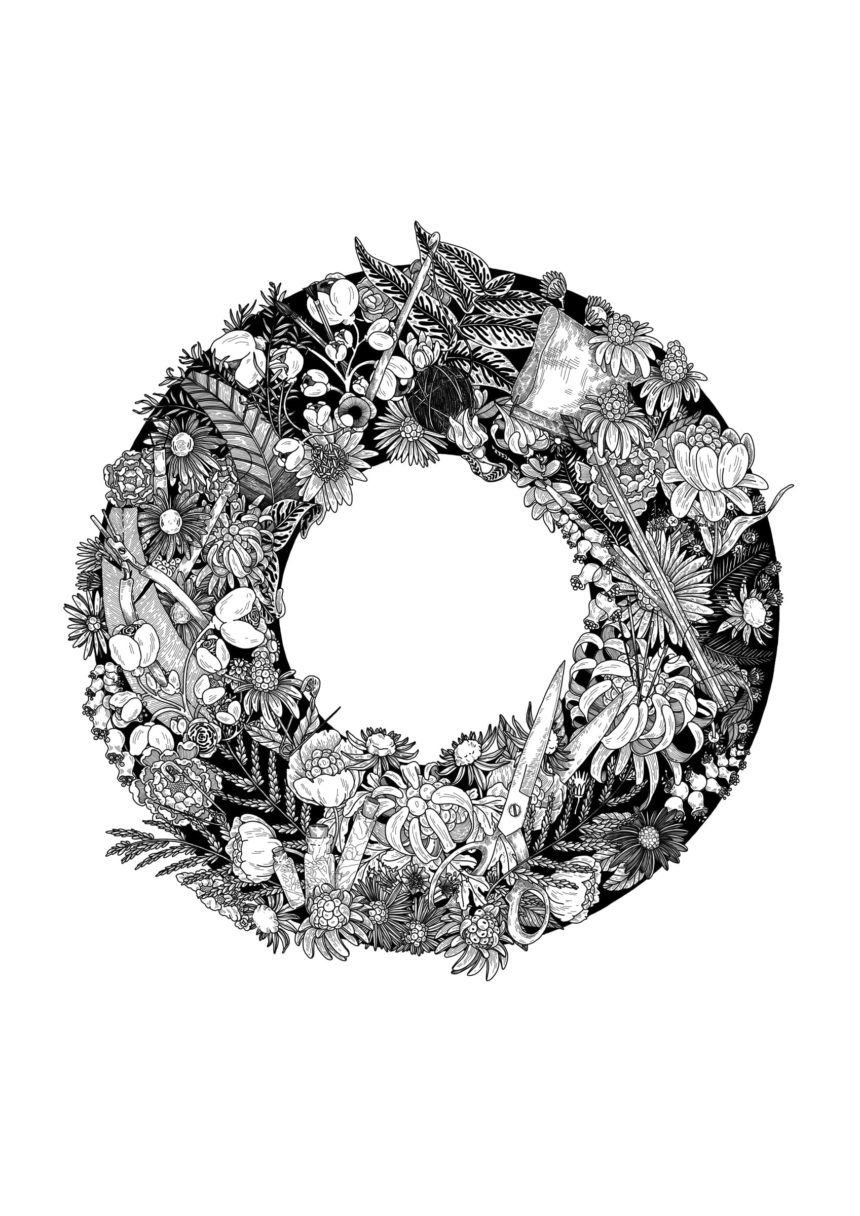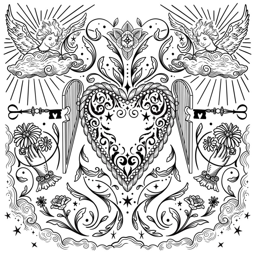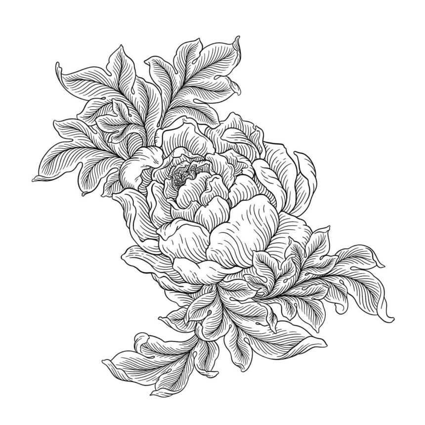 Couverture, illustration au trait, gravure, fleurs, pattern floral