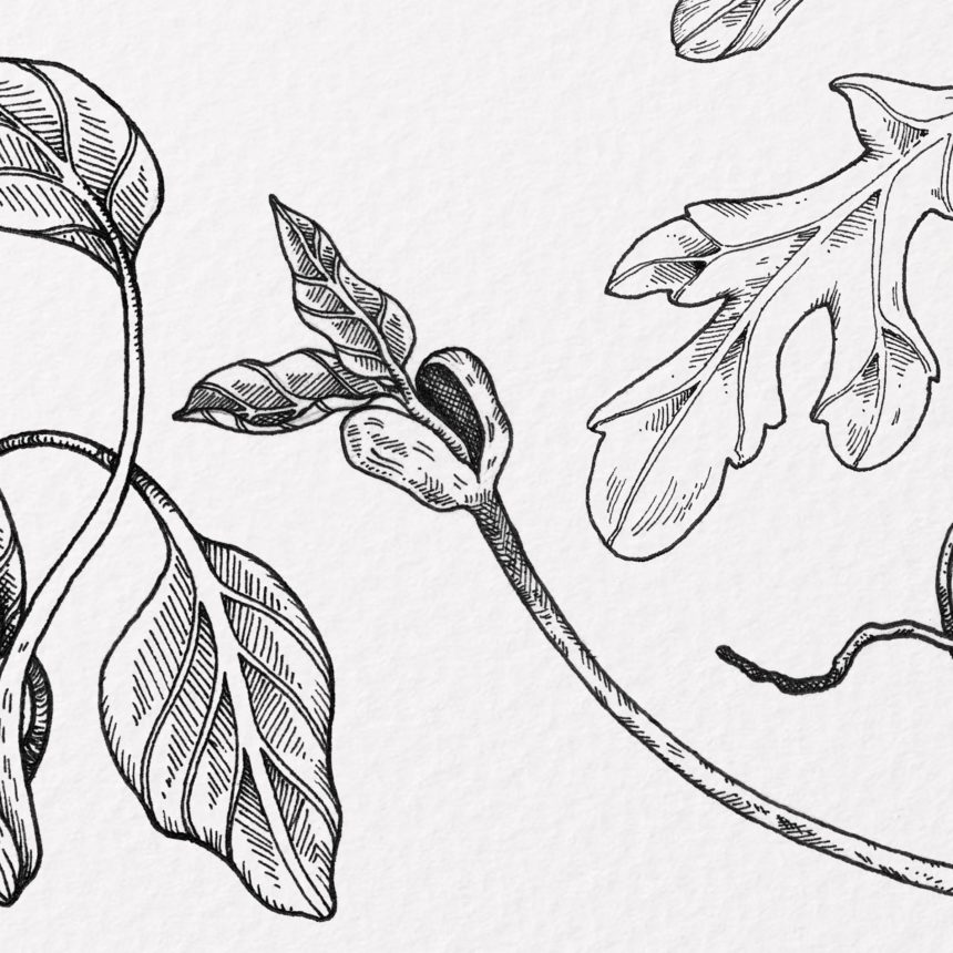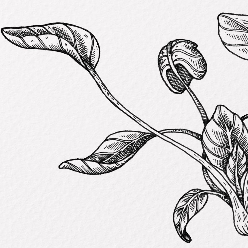 Typo, illustration au trait, gravure, fleurs, pattern floral